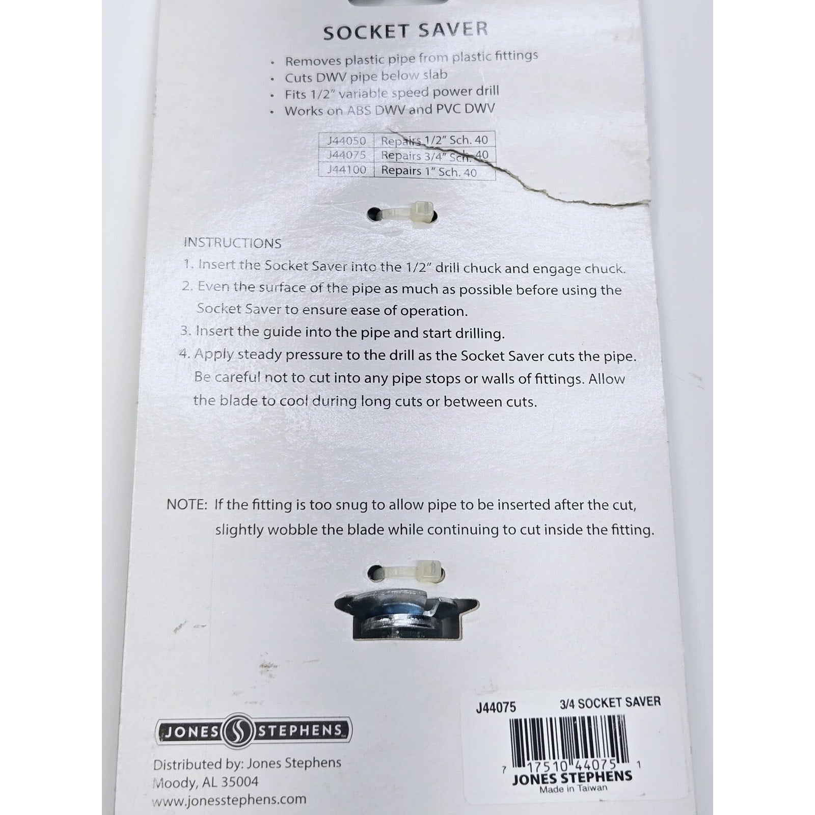 Jones Stephens J44075 3/4" Socket Saver Tool for Removing Plastic Pipe from Hub