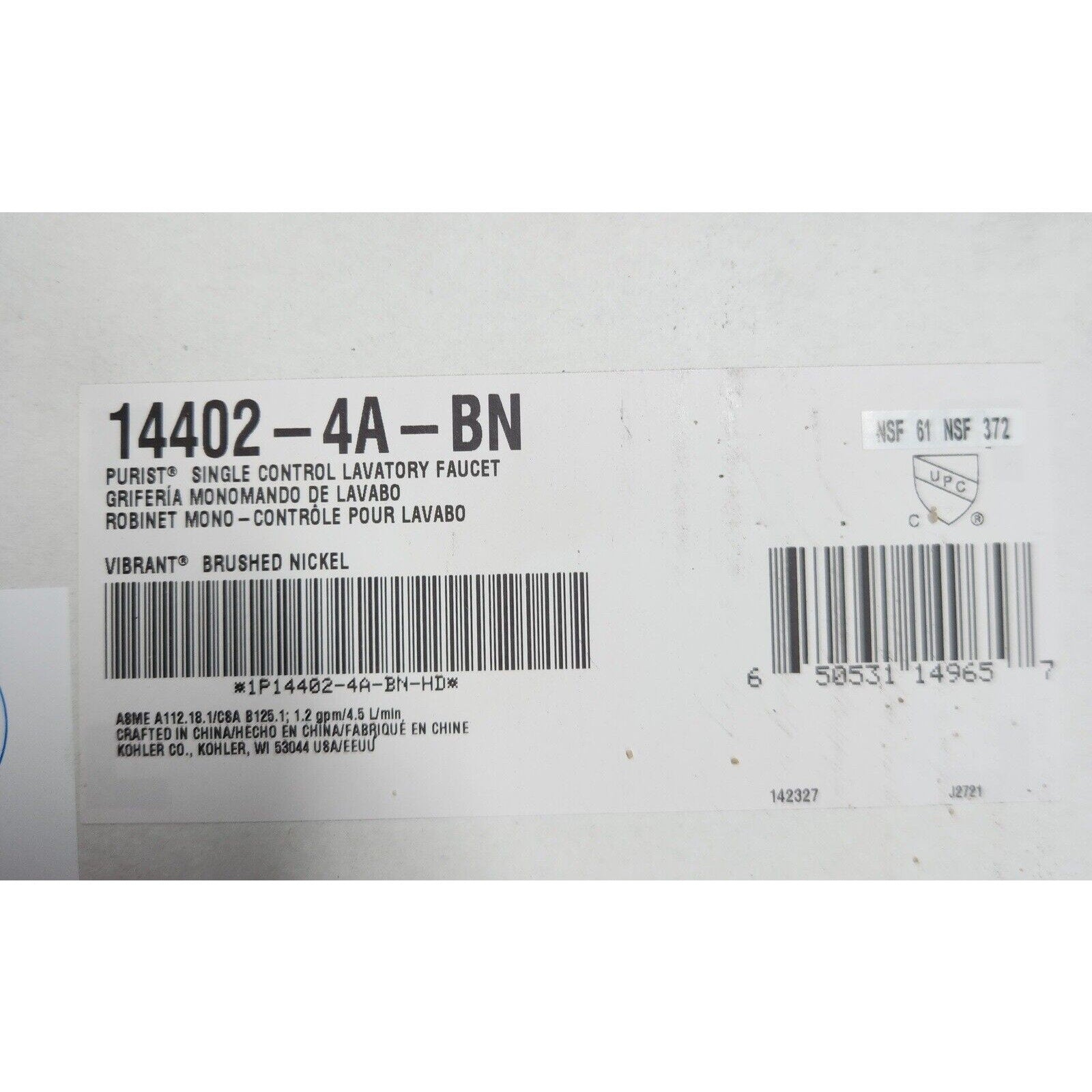 Kohler 14402-4A-BN Purist Single Control Bathroom Faucet -Vibrant Brushed Nickel