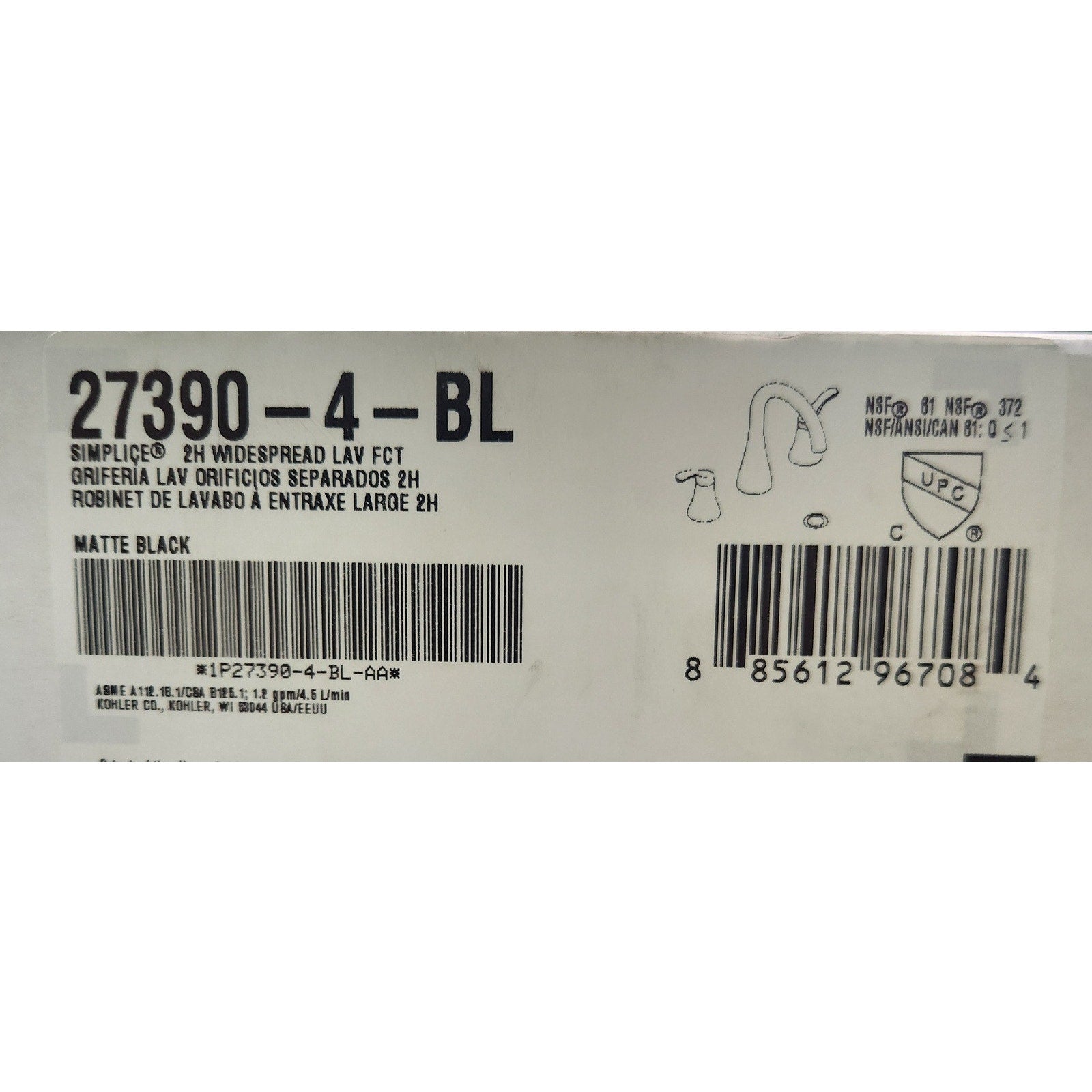 Kohler 27390-4-BL Simplice Widespread Bathroom Faucet 1.2 gpm - Matte Black