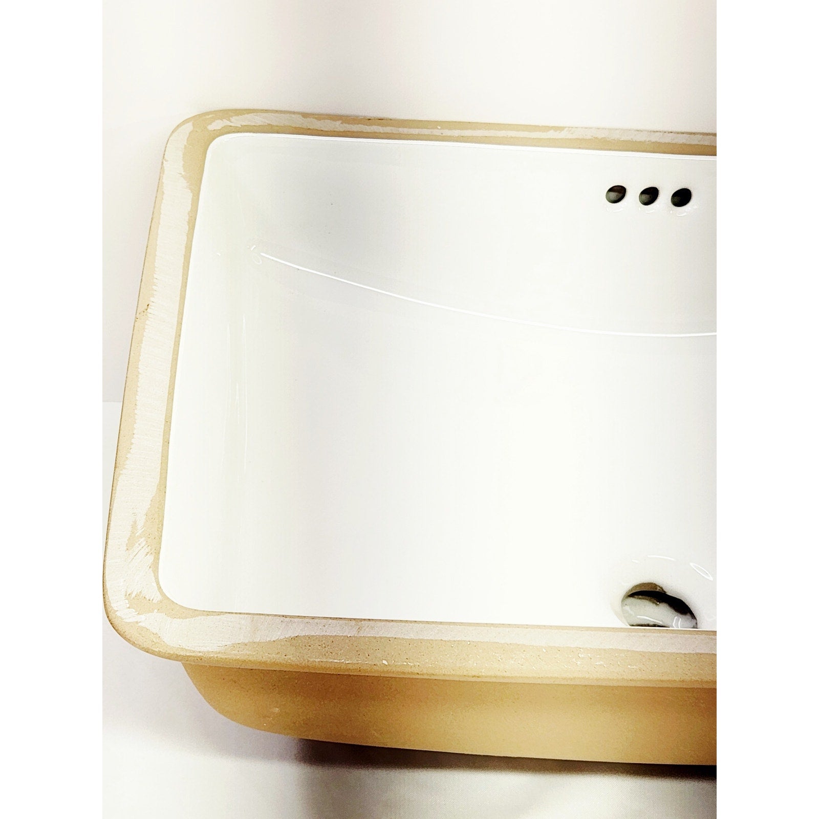 Accent your bathroom with the Myers rectangular porcelain undermount bathroom sink. The front overflow prevents water from spilling, while the porcelain construction resists stains, cracks, and chips and cleans up easily. This sink has a generous water capacity thanks to its 6" bowl depth.