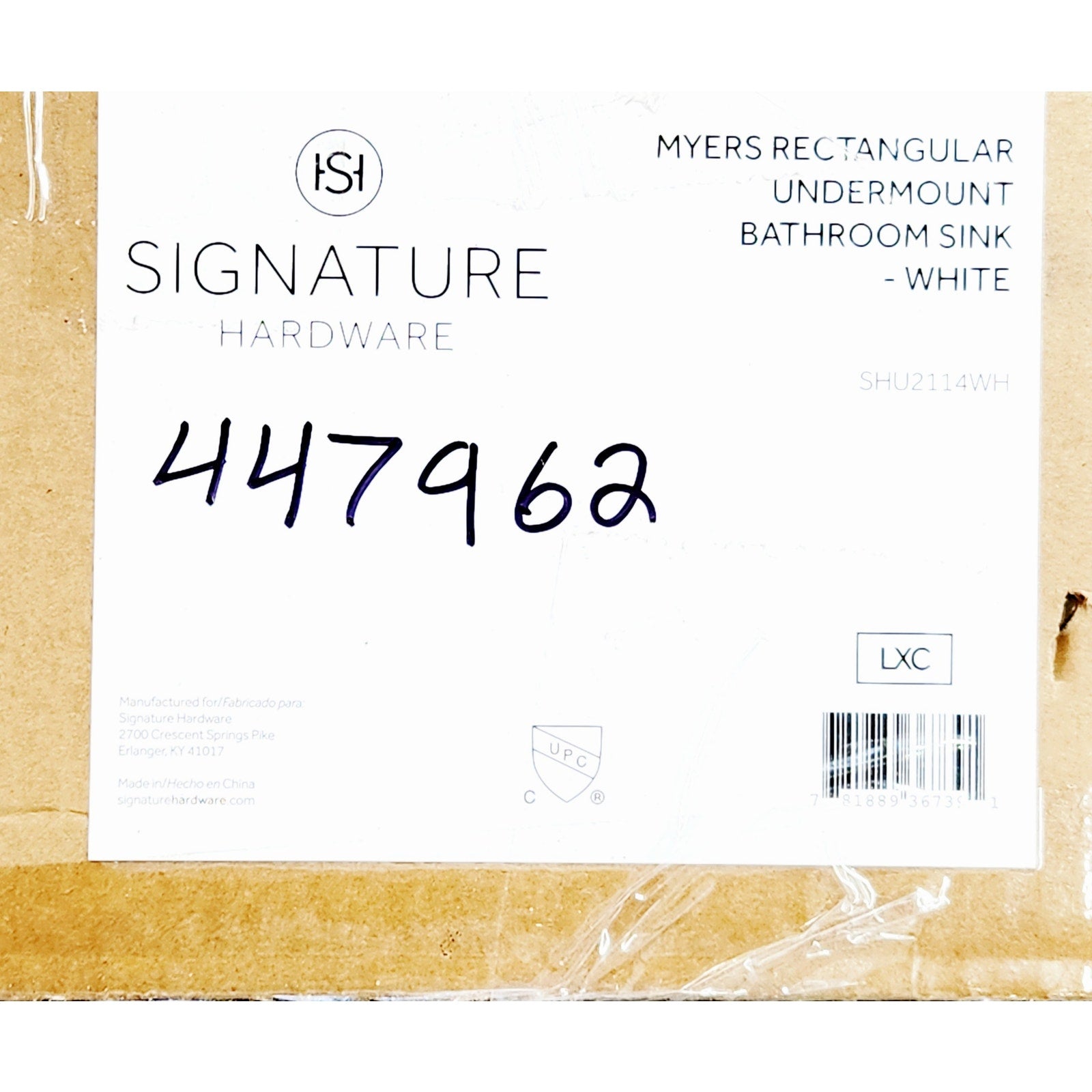 Signature Hardware 447962 Myers 21" Rectangular Undermount Bathroom Sink - White