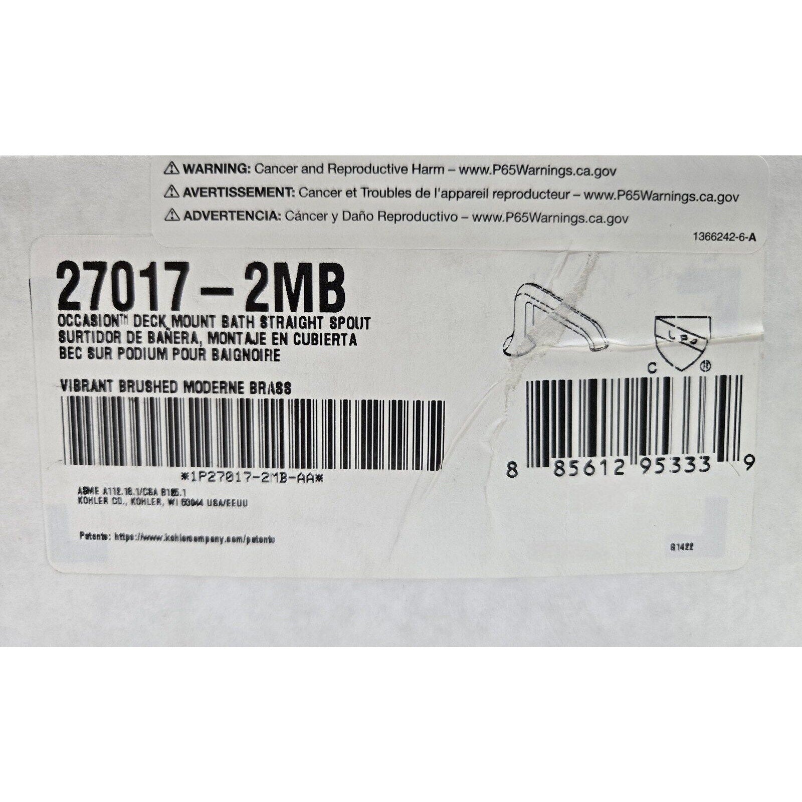 Kohler 27017-2MB Occasion 8-3/8" Tub Spout with Straight Design - Brushed Gold