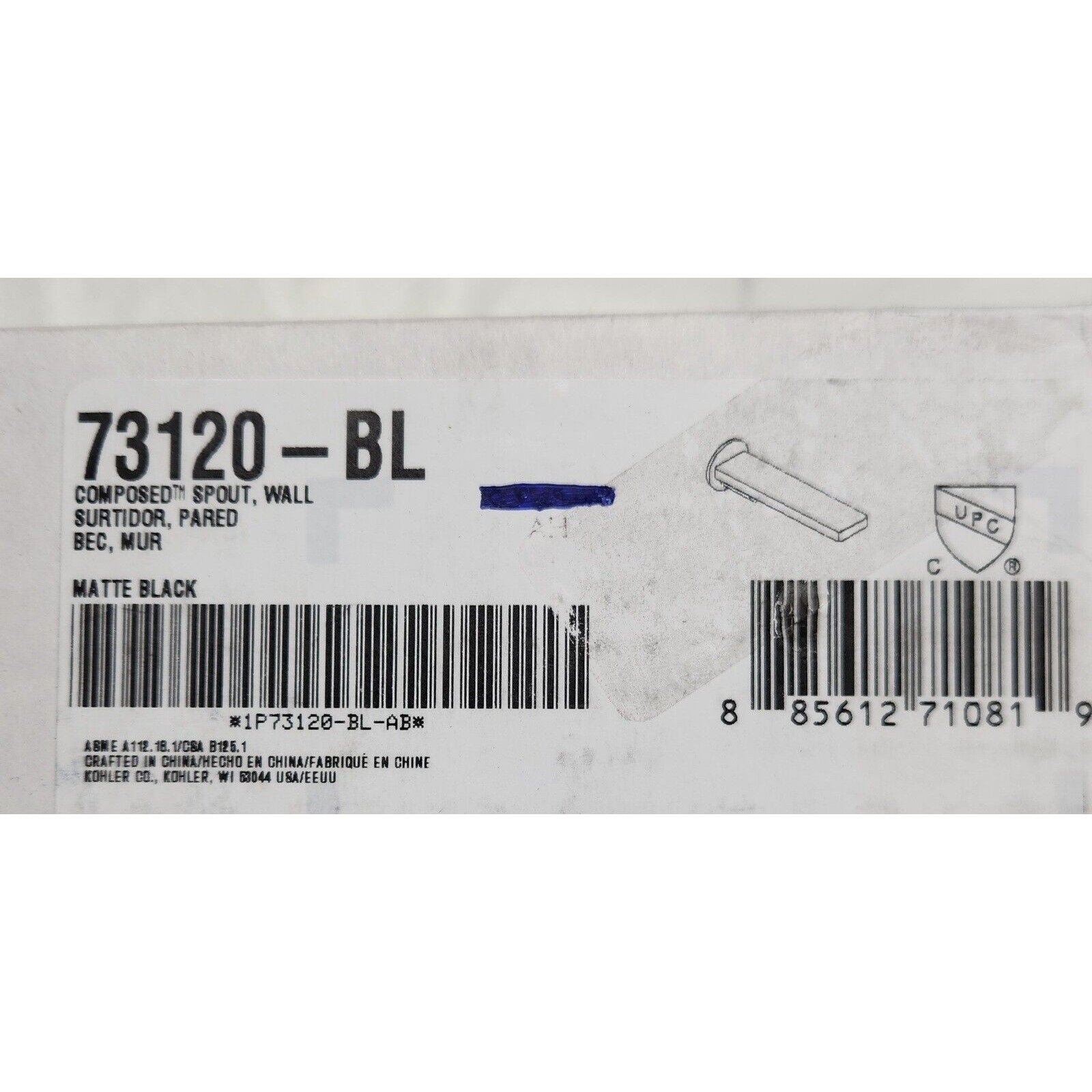 Kohler 73120-BL Composed Wall-Mount Bath Spout - Matte Black