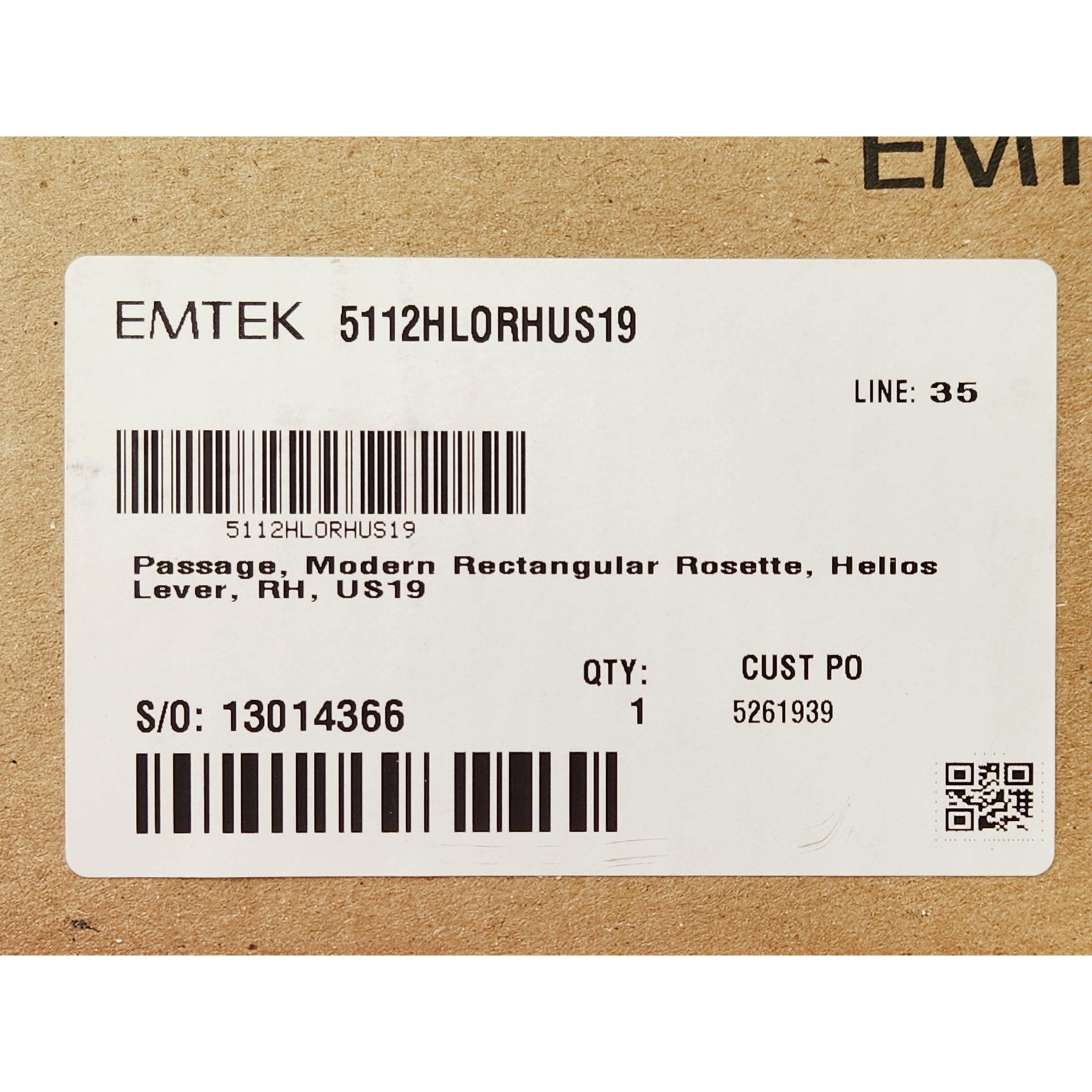 Emtek 5112-HLO-US19RH Helios Right Hand Door Lever Passage Set With Modern Rectangular Rosette - Flat Black