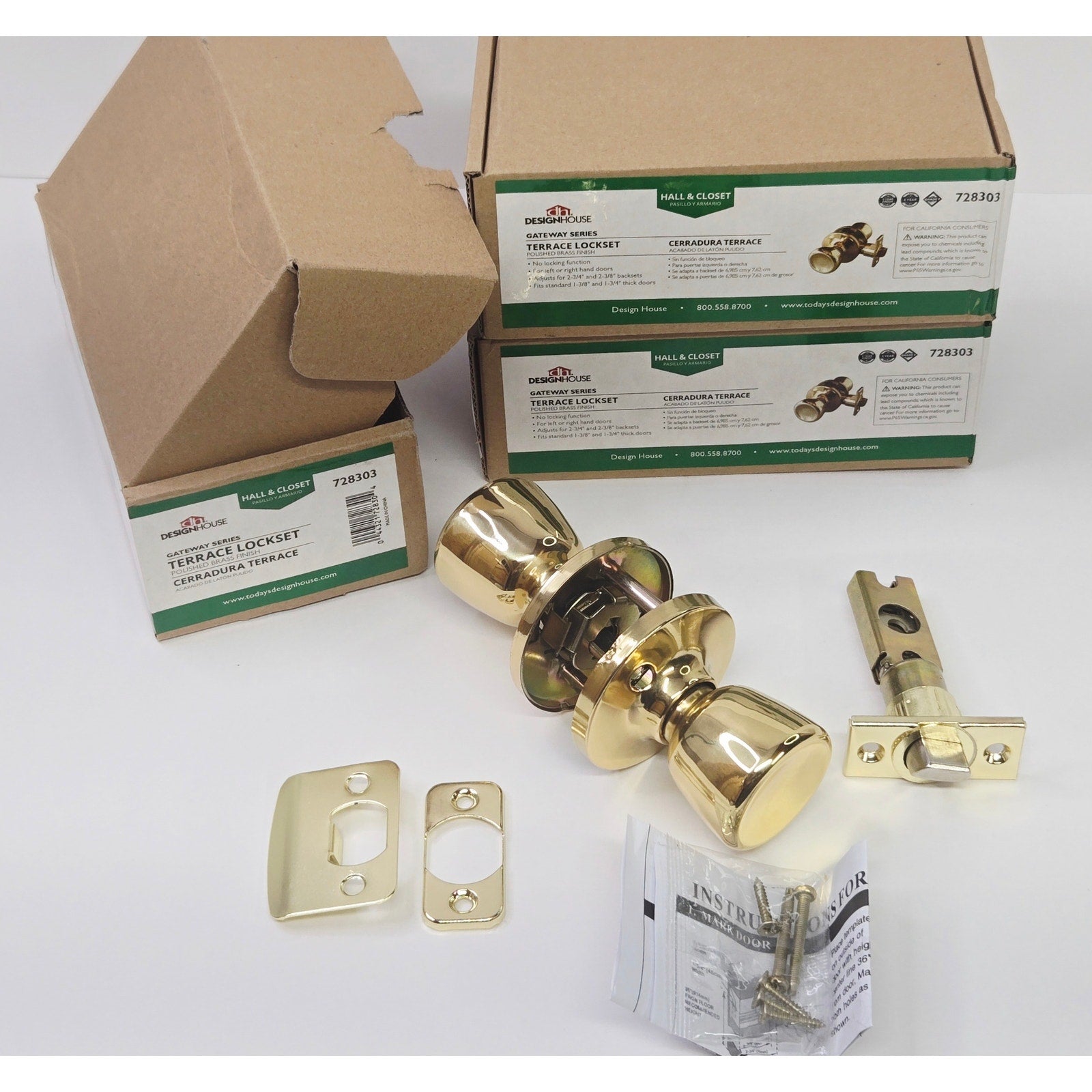 Design House 728303 Terrace Passage Door Knob Set, - Polished Brass (3-PACK)