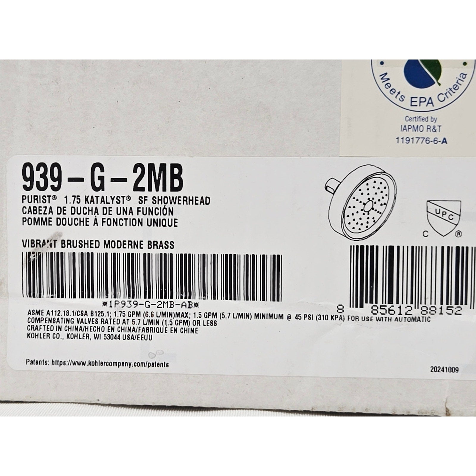 Kohler 939-G-2MB Purist Single Function Shower Head - Vibrant Brushed Brass