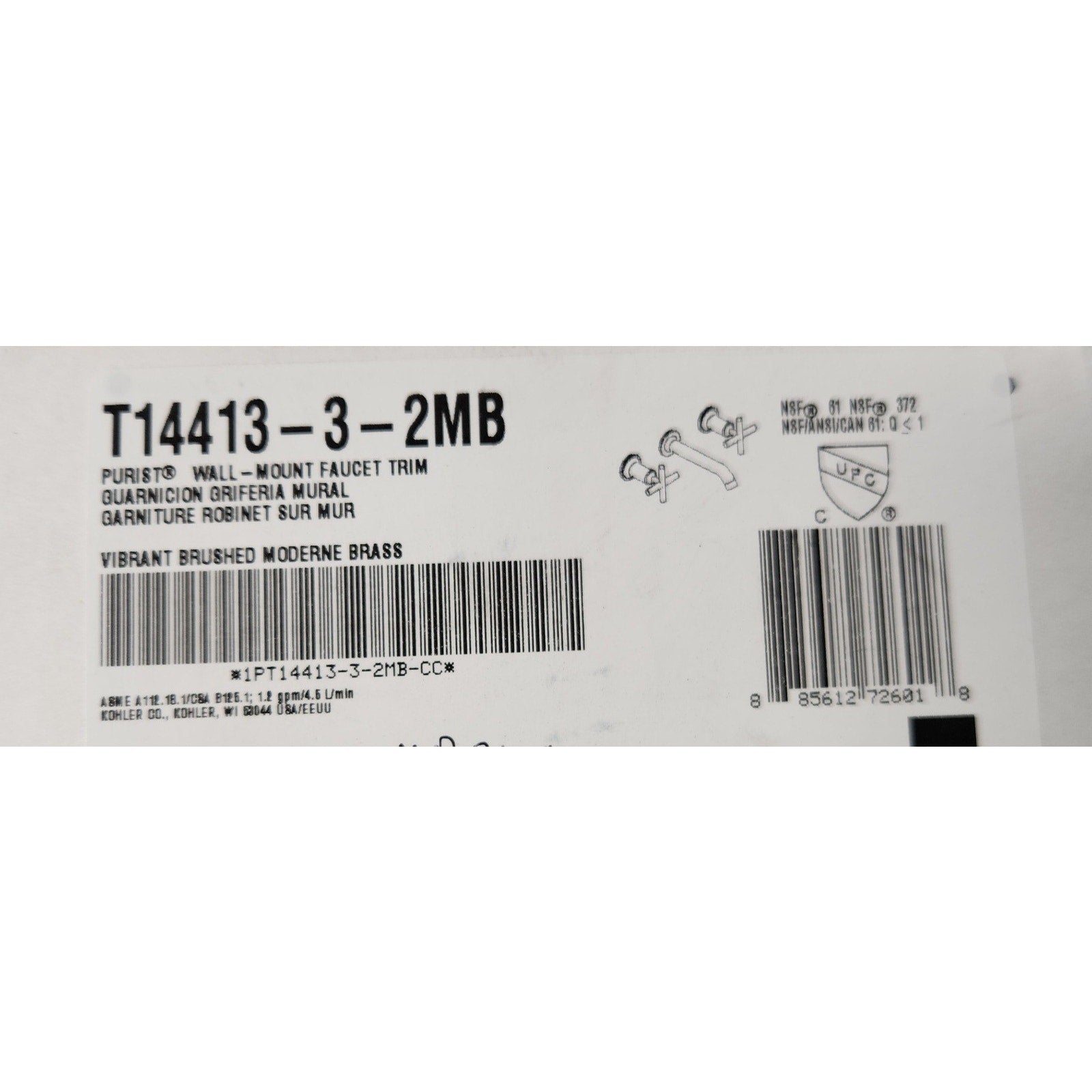 Kohler T14413-3-2MB Purist Wall Mounted Bathroom Faucet - Vibrant Brushed Moderne Brass
