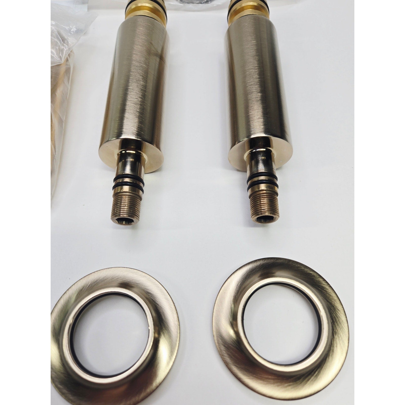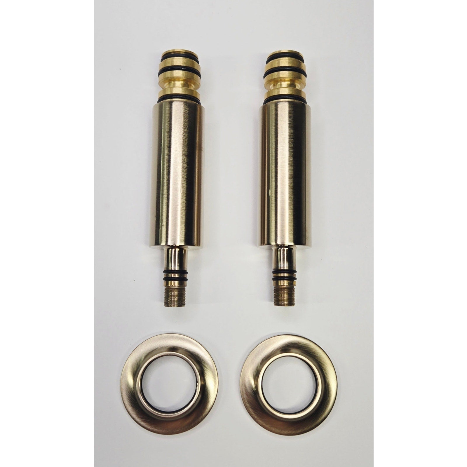 What's more? Its dual-column design, with an 8" center-to-center spread, brings both style and stability to your bath setup. Additionally, these T71765-GL deck mount tub filler unions by Brizo have an overall 3-7/8" height, providing just the right amount of elevation and adding sophistication without overwhelming your space. Plus, it requires no separate rough-in, making installation simple—saving you time, effort, and additional costs. For seamless compatibility, these unions are best used with the Brizo two-handle tub filler trim kits from the Kintsu, Allaria, and Frank Lloyd Wright collections.