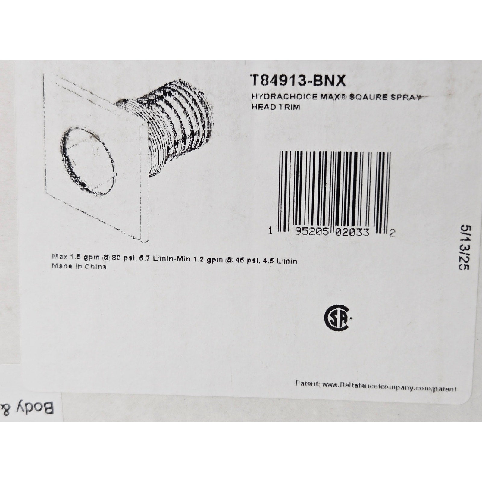 Brizo T84913-BNX Square Body Spray Trim Only for Brizo HydraChoice - Less Body Spray and Rough In - Brilliance Black Onyx