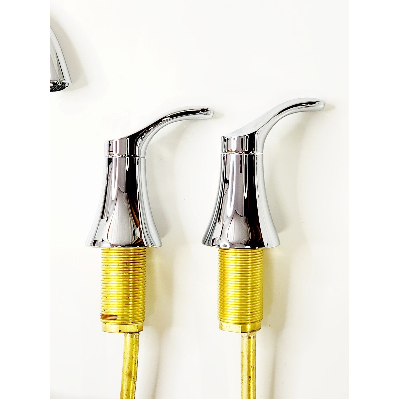 Two lever handles offer separate control of hot and cold water