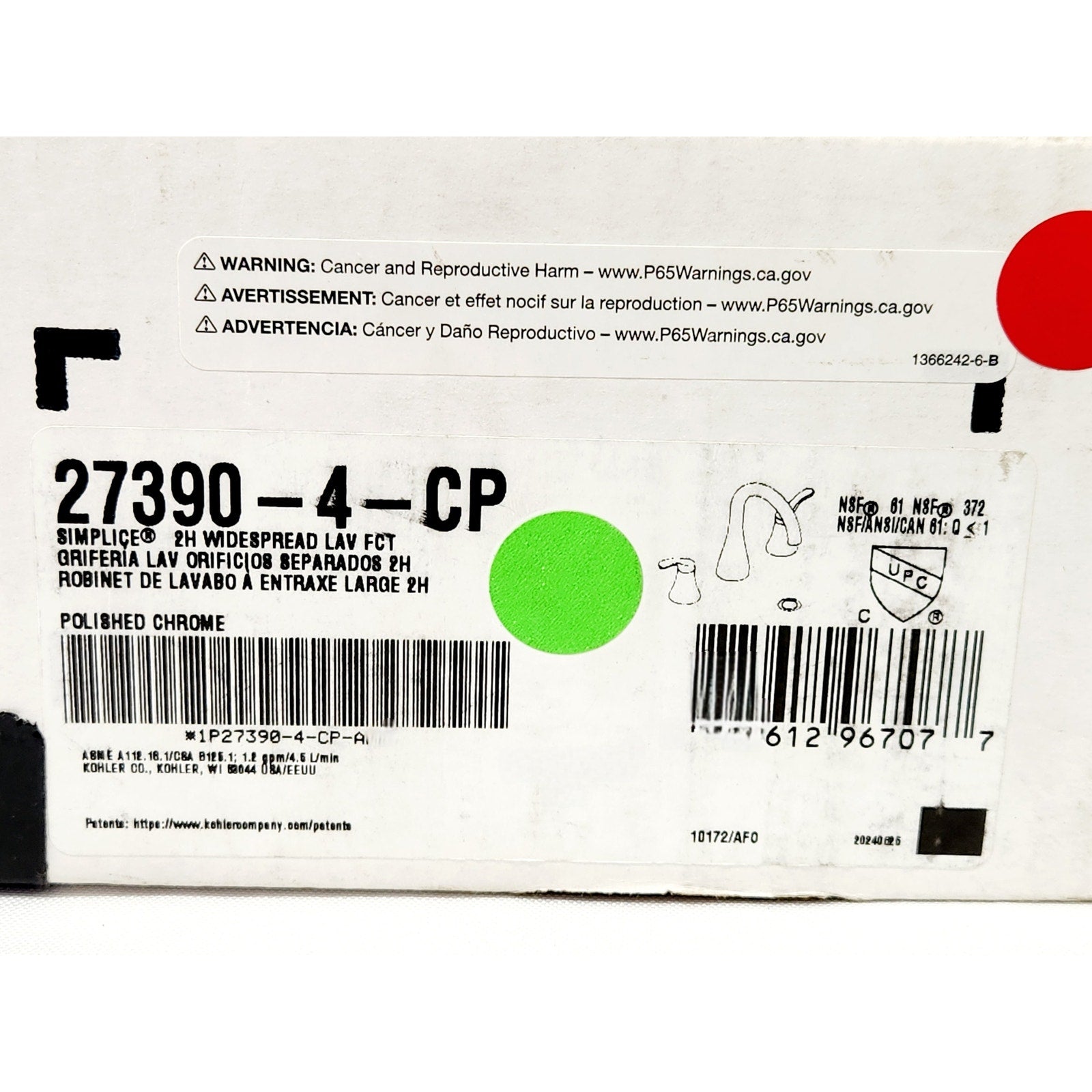 Kohler 27390-4-CP Simplice 1.2 GPM Widespread Bathroom Faucet - Chrome READ
