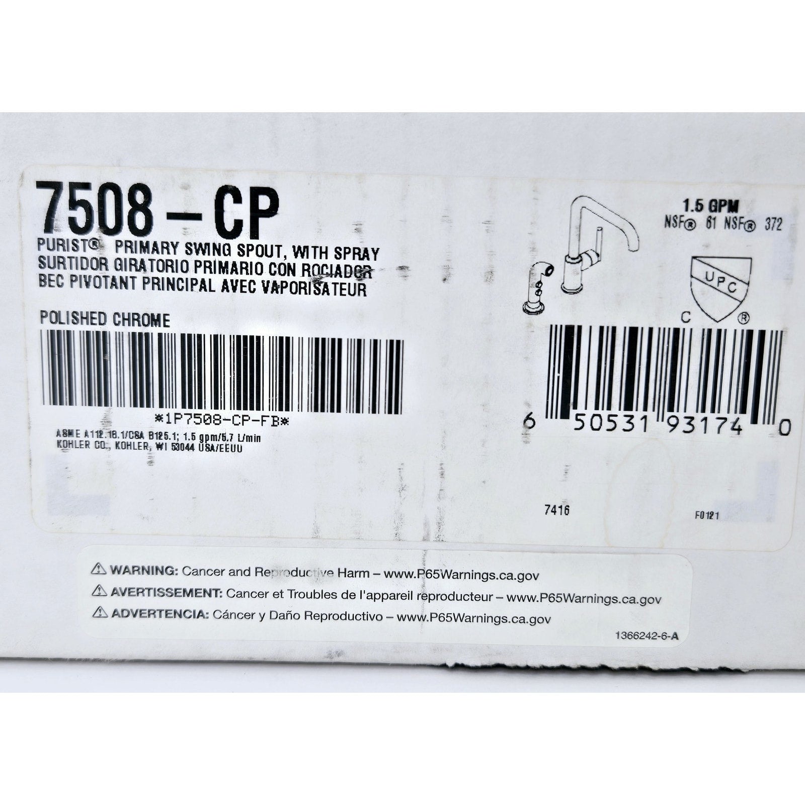 Kohler 7508-CP Purist Kitchen Sink Faucet with Side Spray - Polished Chrome