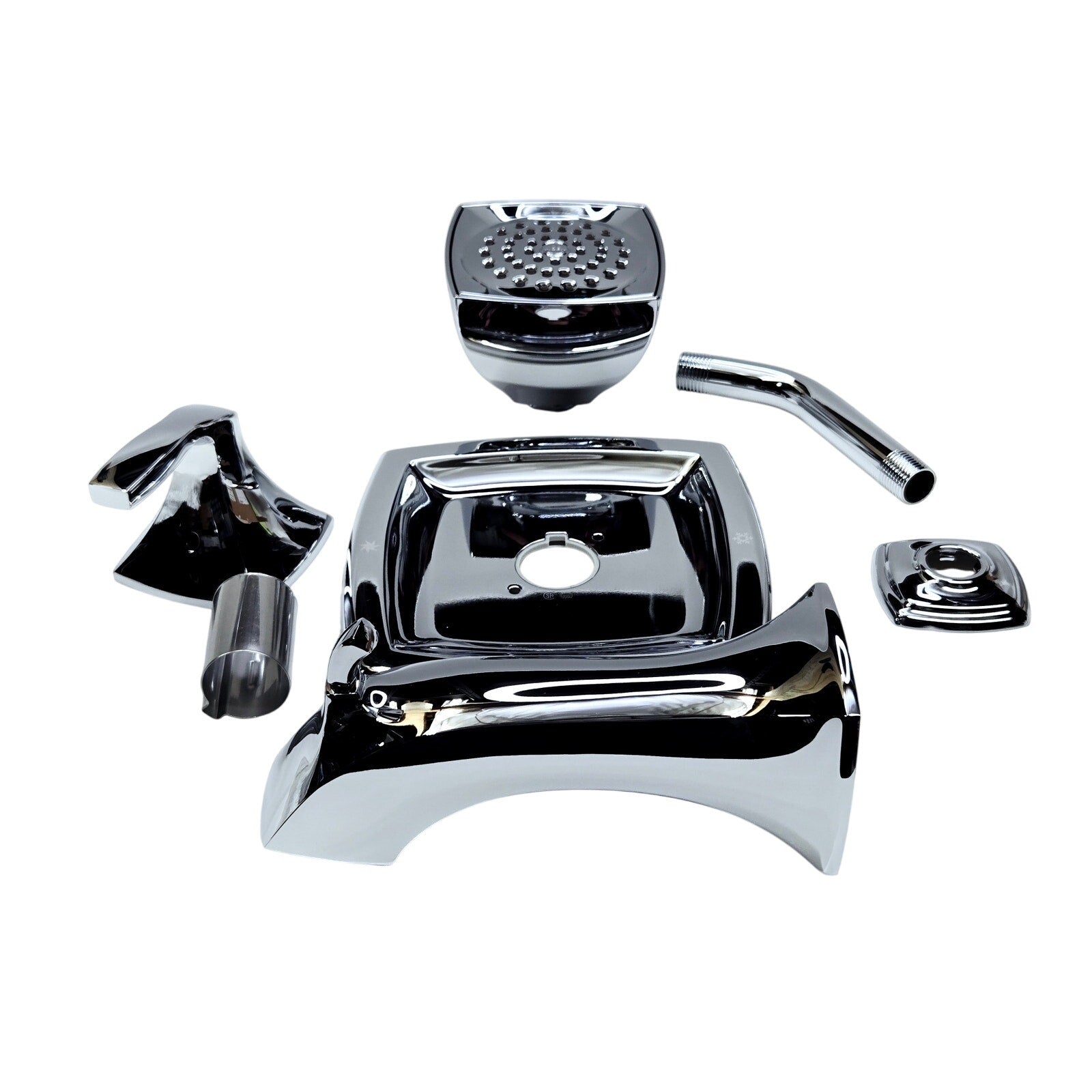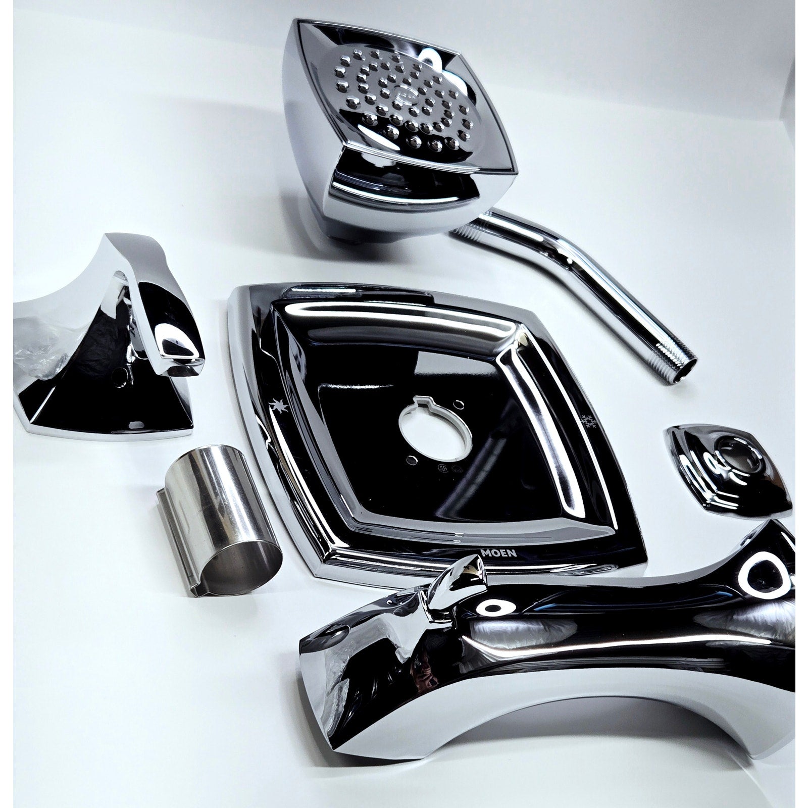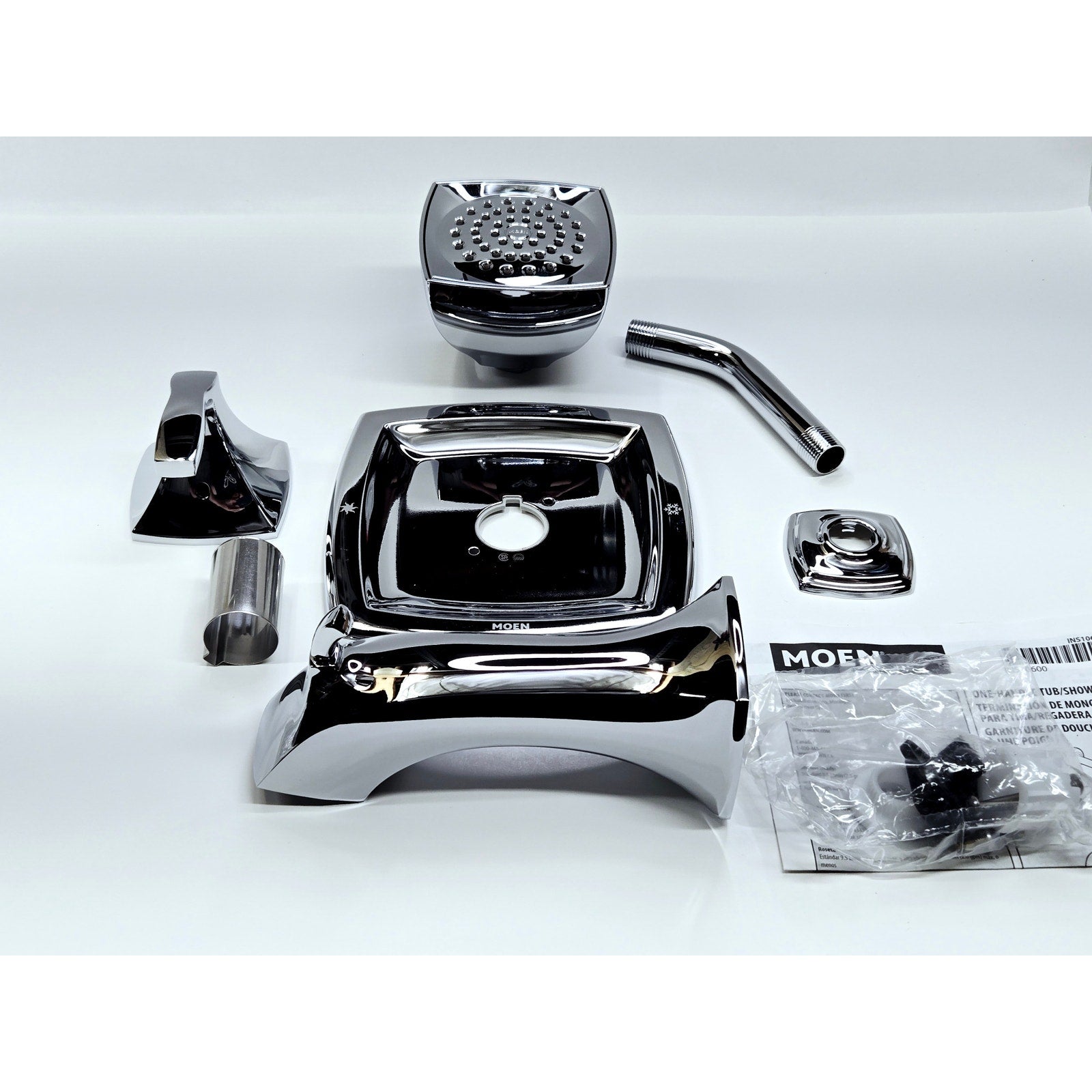 Tub and Shower Package Includes: Valve trim, shower head, shower arm, and tub spout
