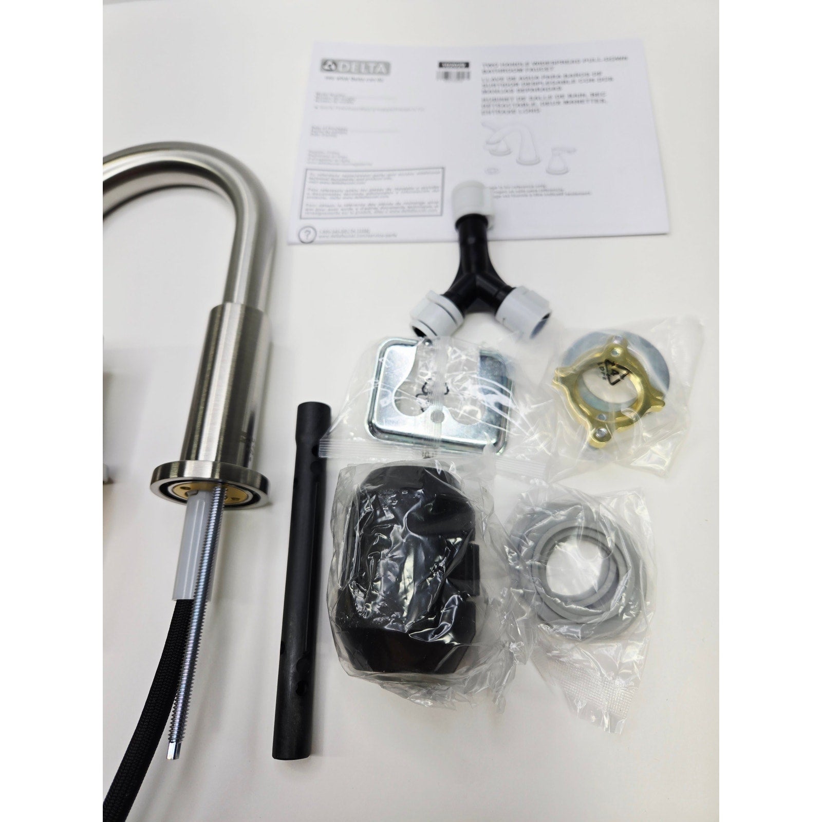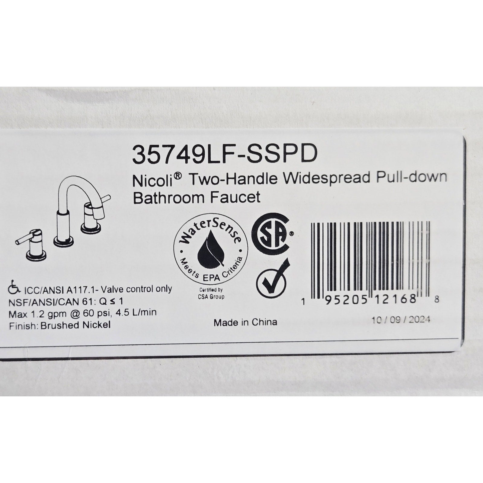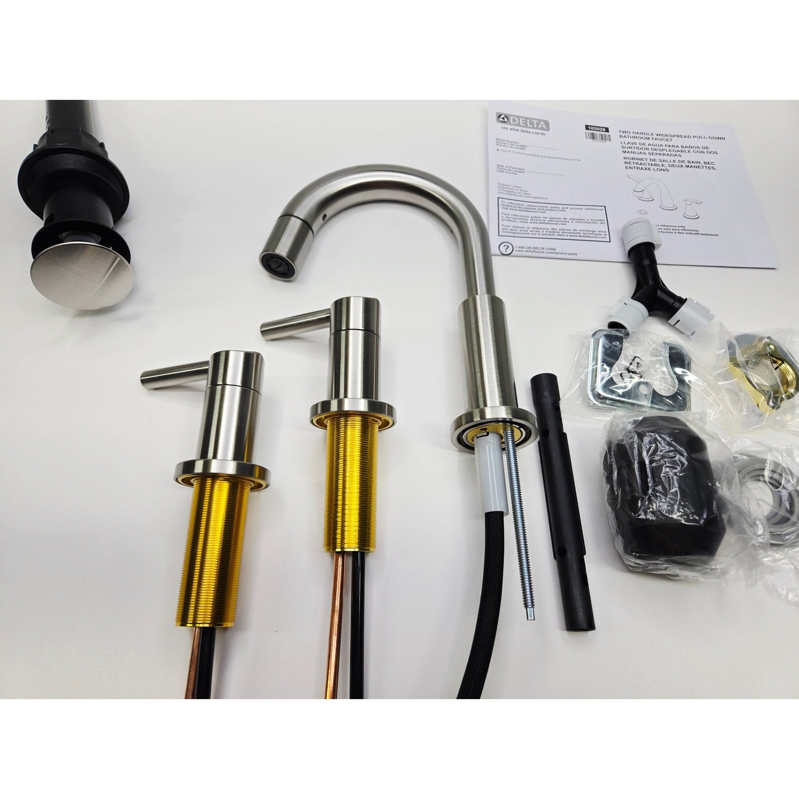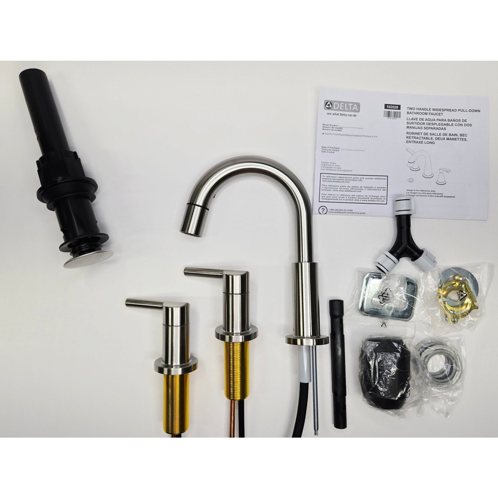 Delta 35749LF-SSPD Nicoli 1.2 GPM Widespread Bathroom Faucet with Pull Down Spout and Push Pop-Up Drain Assembly - Brilliance Stainless