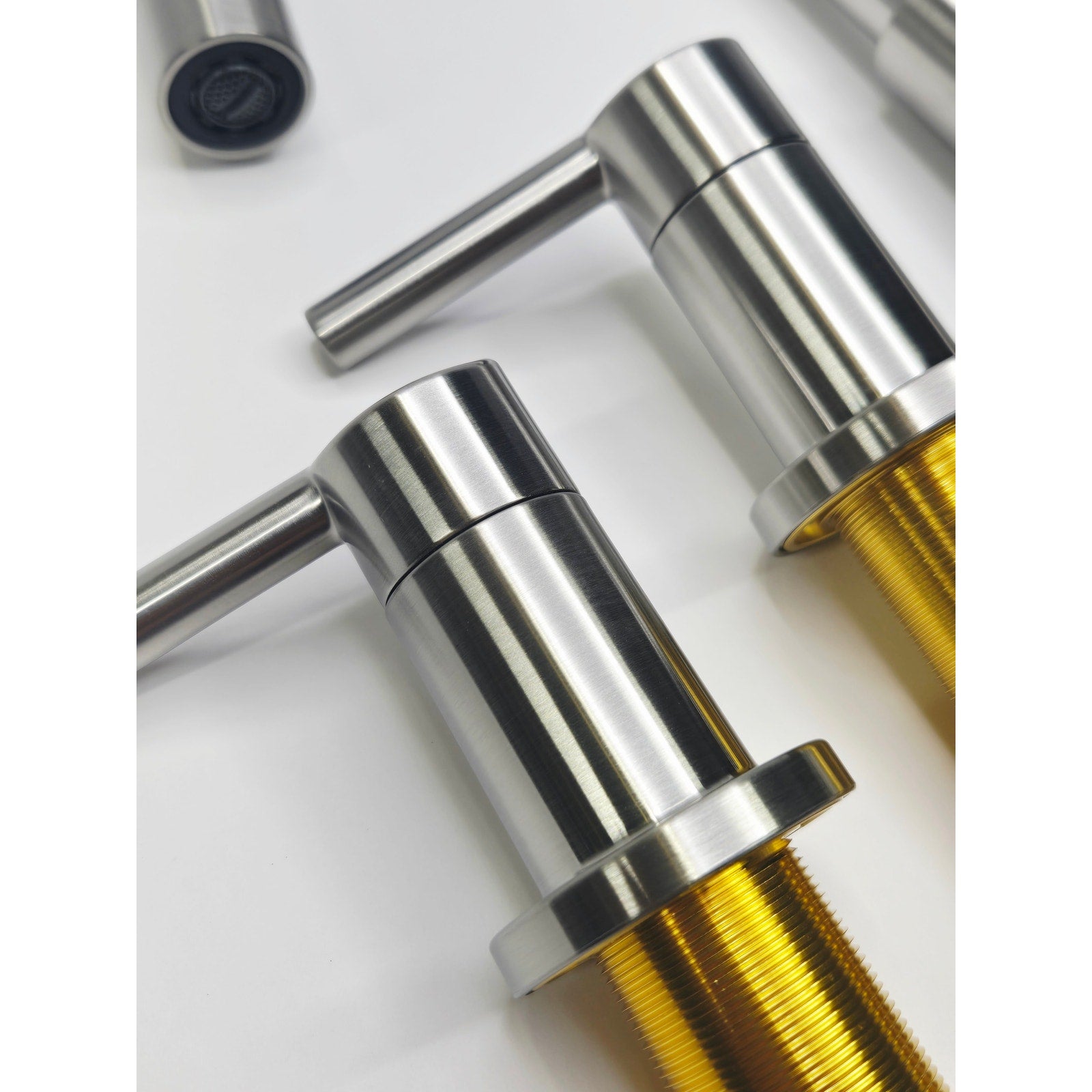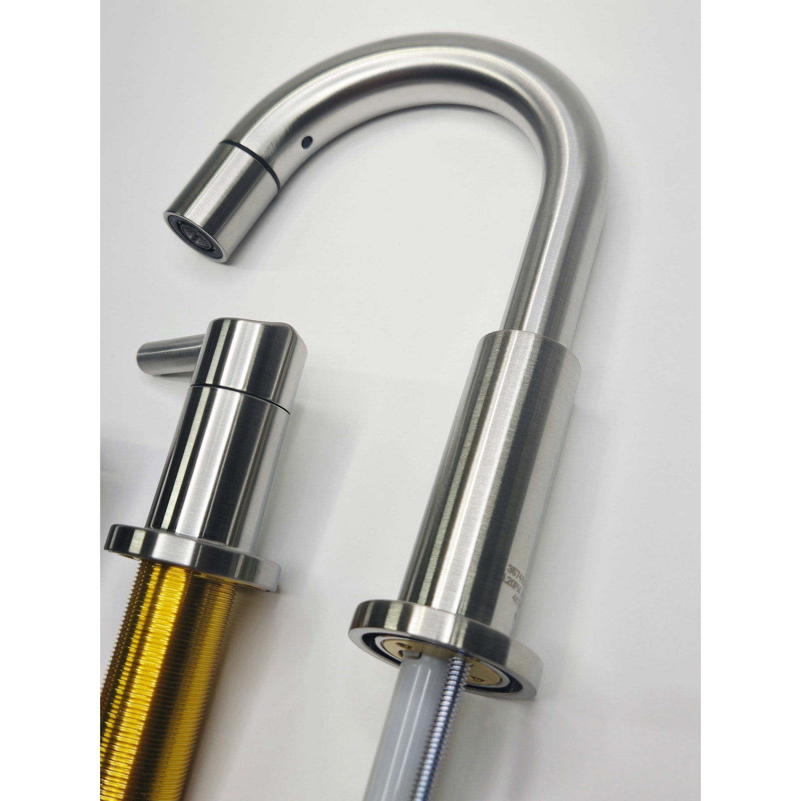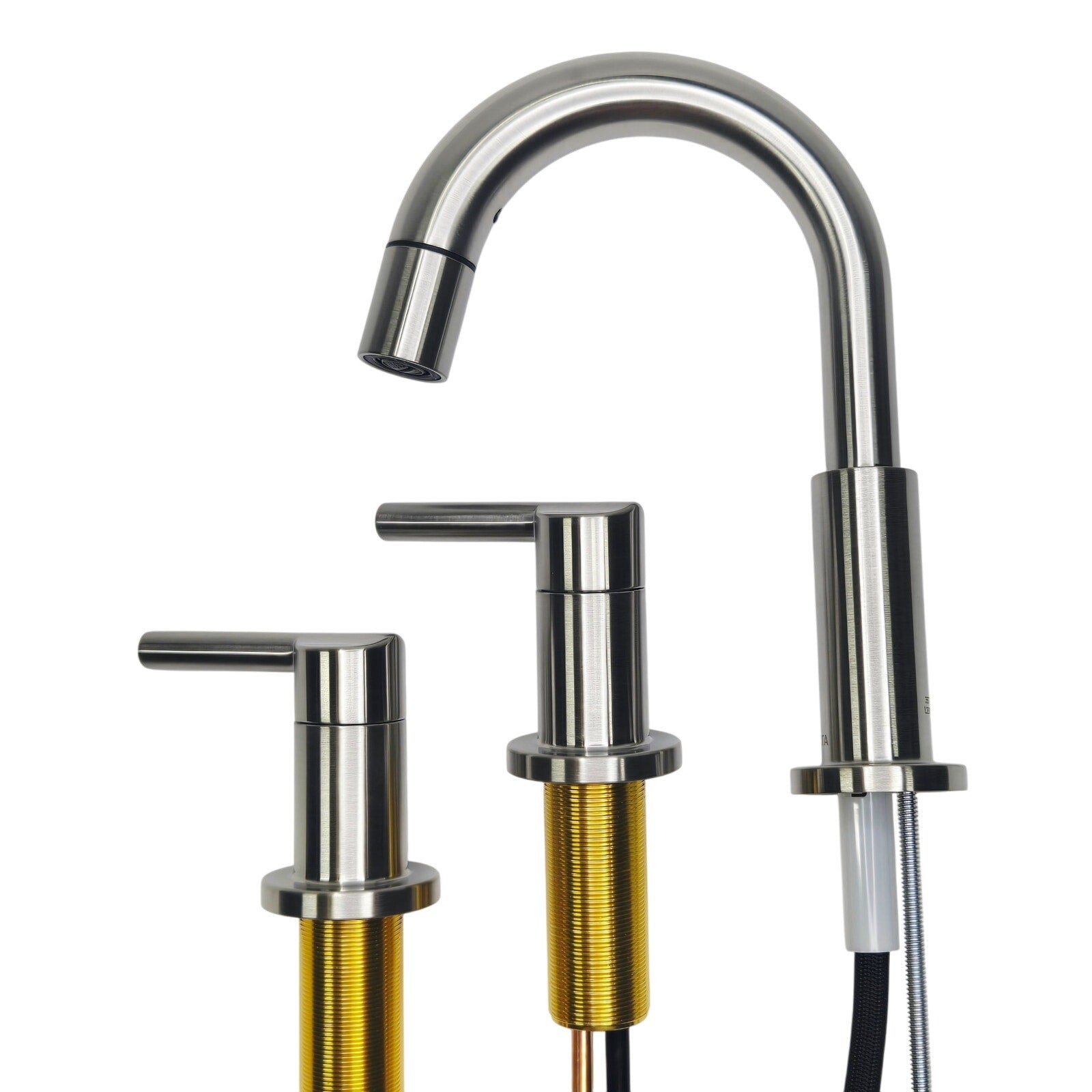 Deck mounted installation - 3 hole faucet mounts directly to sink or countertop