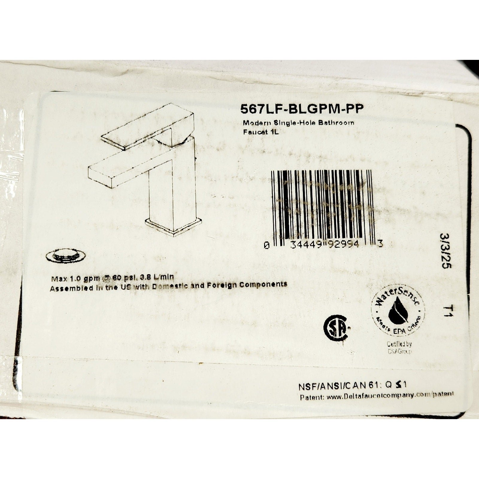 Delta 567LF-BLGPM-PP Modern 1.2 GPM Single Hole Bathroom Faucet - Matte Black