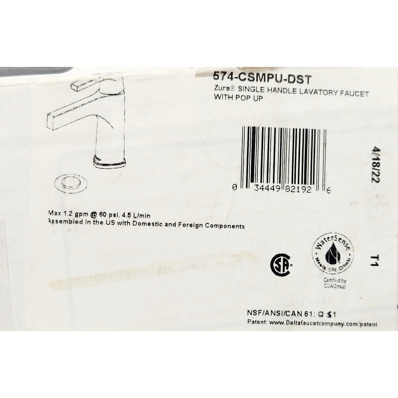 Delta 574-CSMPU-DST Zura Single Hole Bathroom Faucet - Chrome/Matte Black