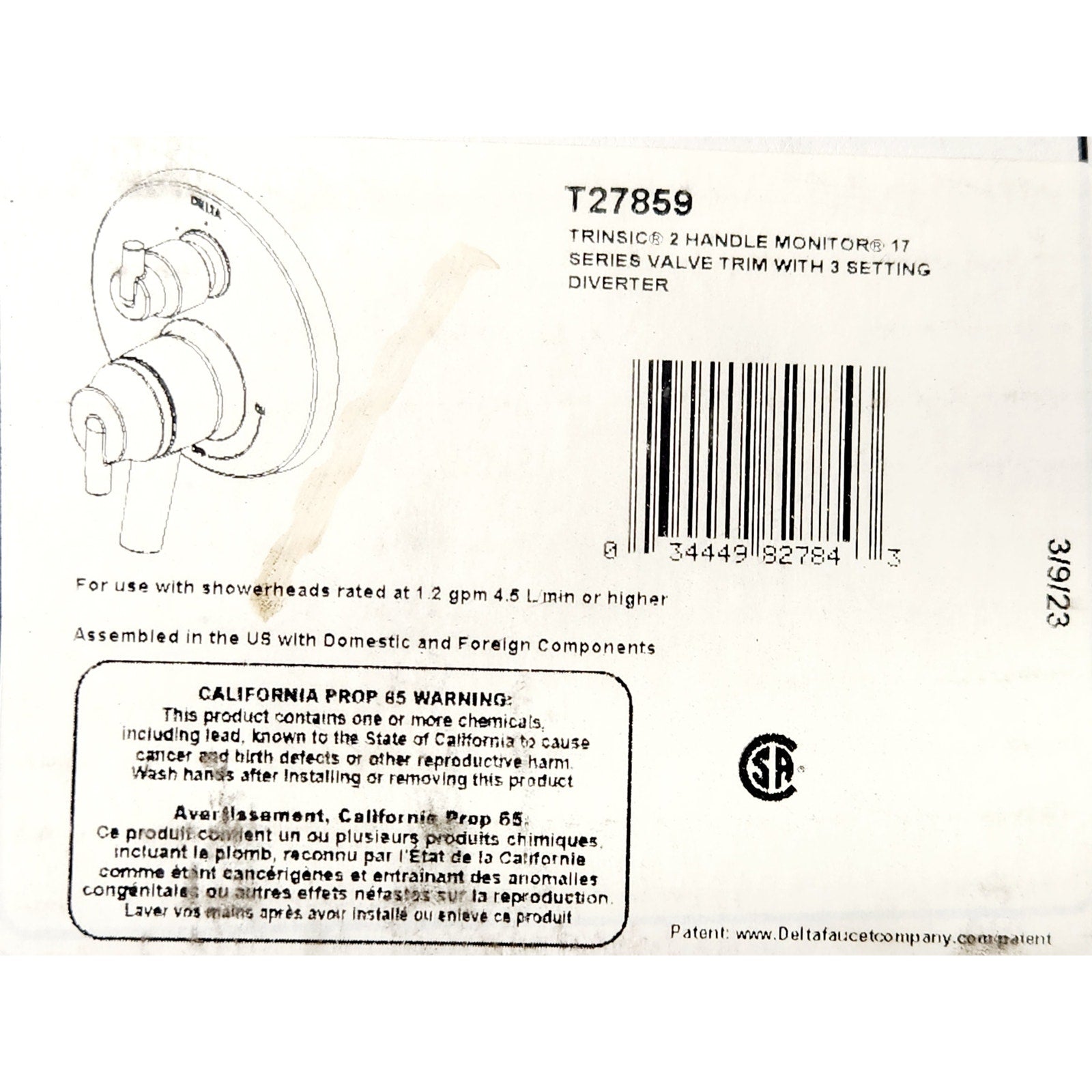 Delta T27859 Trinsic 17 Series Pressure Balanced Valve Trim Less Rough-In - Chrome