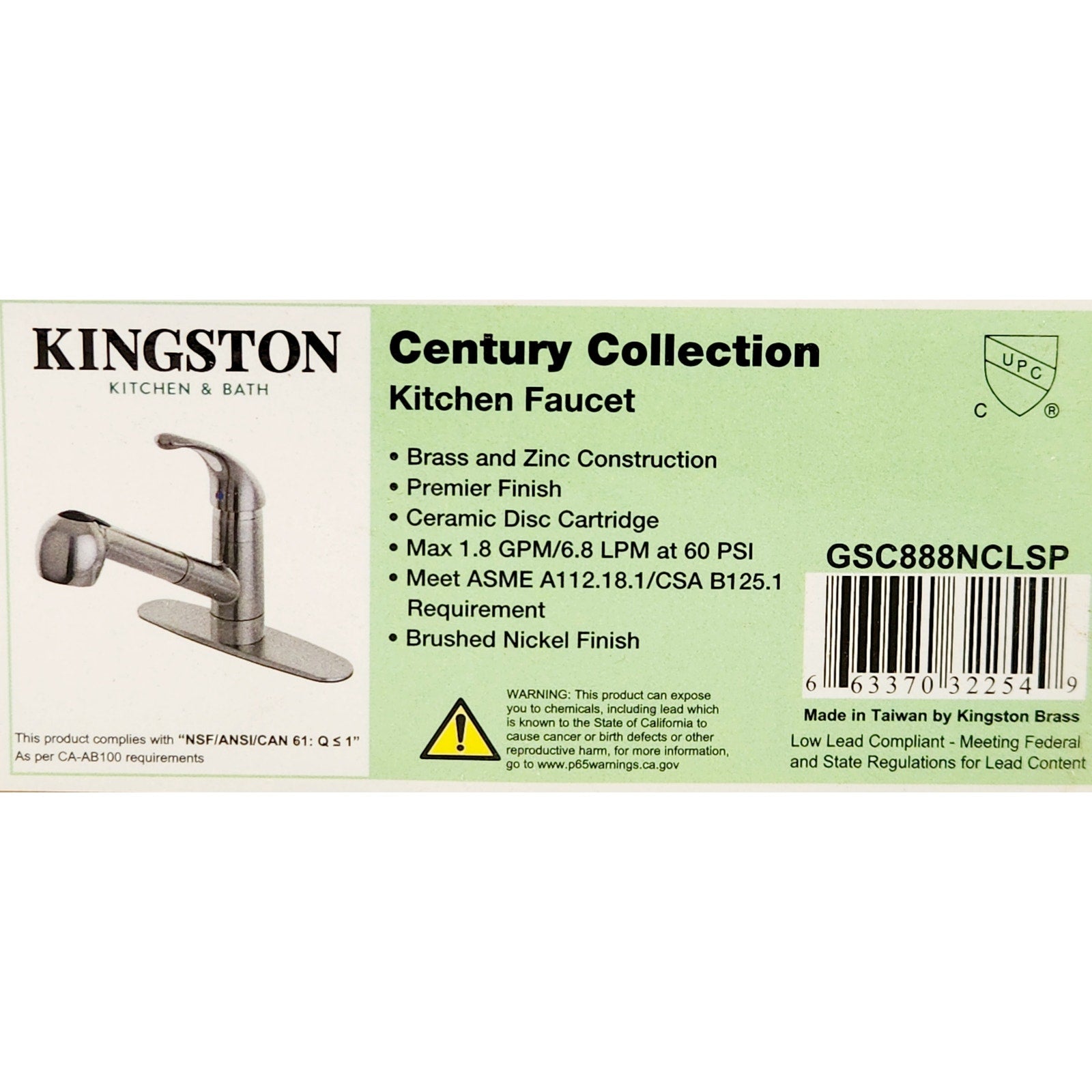 Kingston Brass GSC888NCLSP Century 1.8 GPM Single Hole Pull Out Kitchen Faucet - Brushed Nickel