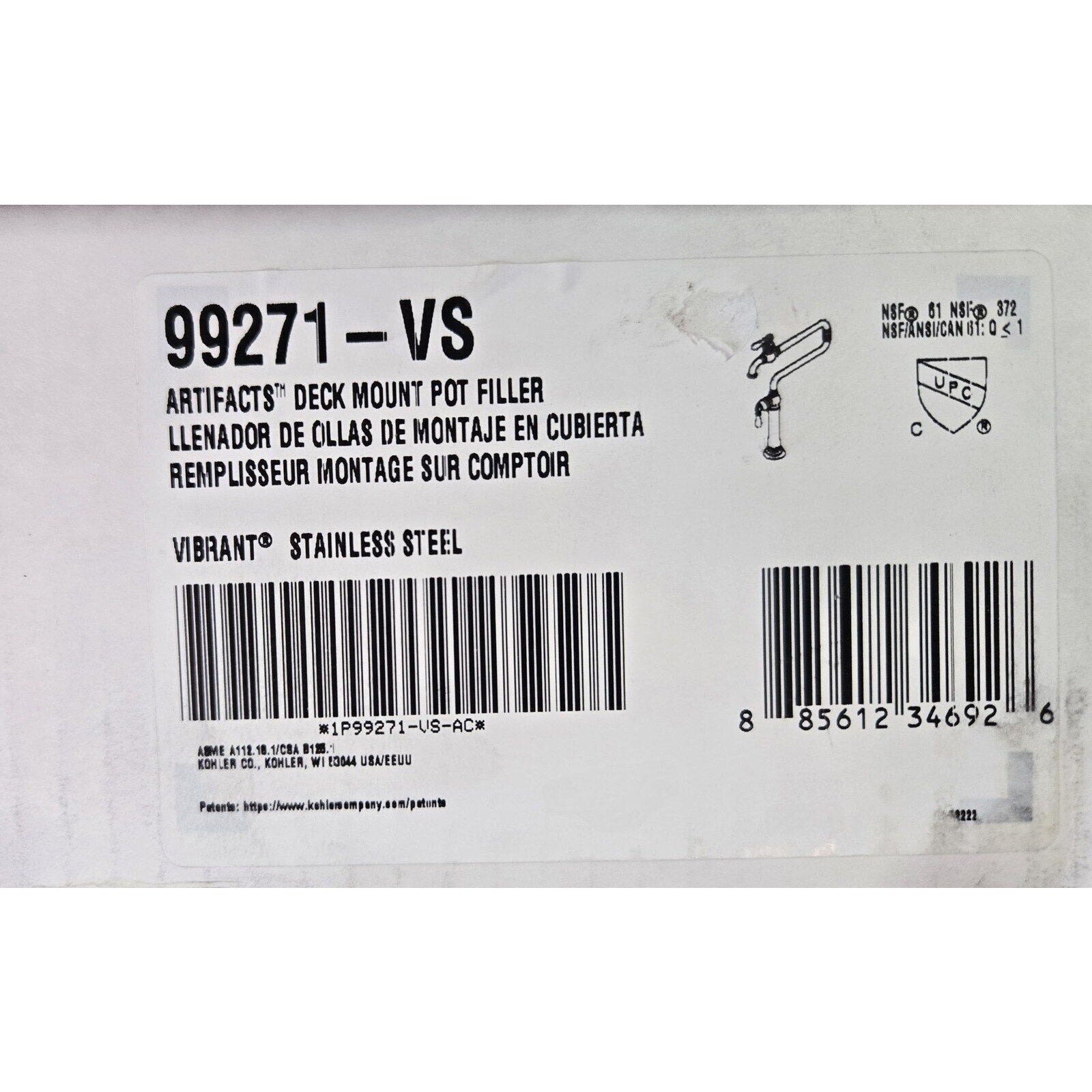 Kohler 99271-VS Artifacts 1-Hole Pot Filler Kitchen Faucet - Vibrant Stainless