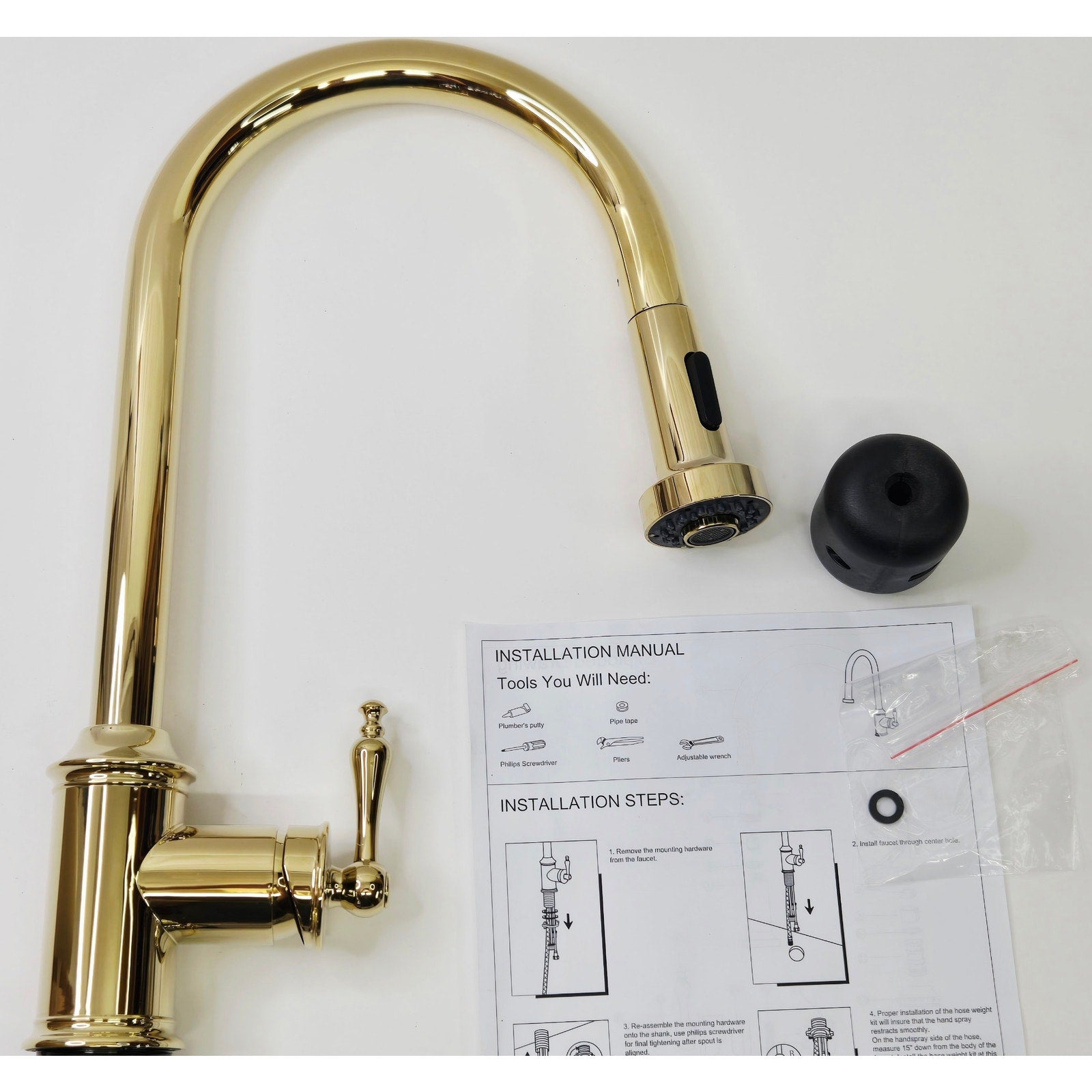 Signature Hardware 434084 Southgate Pull-Down Kitchen Faucet - Polished Brass