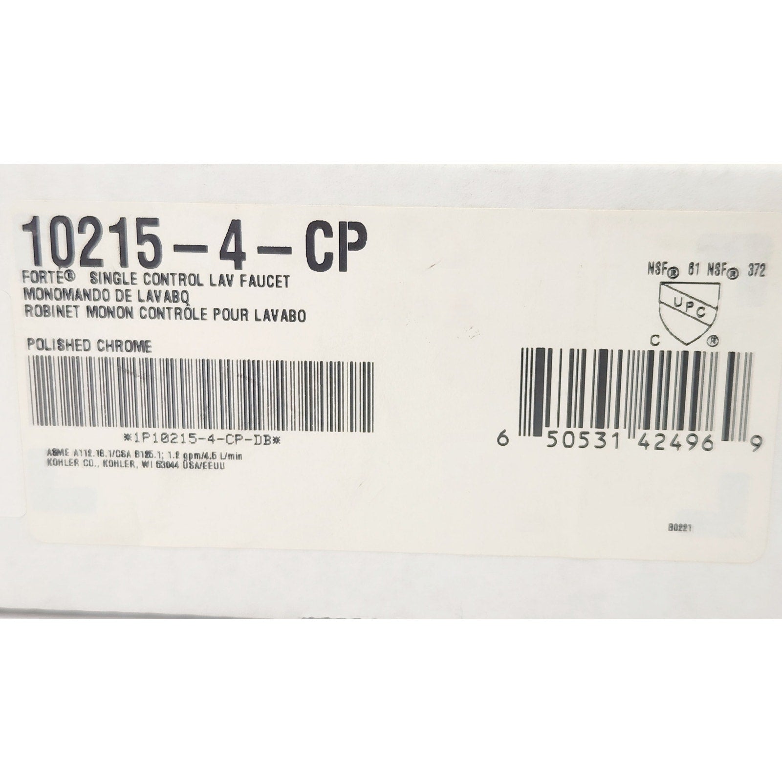 Featuring smooth curves and clean lines, the Kohler 10215 Forté Single-Control Lavatory Faucet is an easy-to-use faucet with a design that complements both classic and contemporary decor. Installation is fast and easy, and the Kohler ceramic valves and finish ensure a long-lasting product that can withstand the demands of daily use.