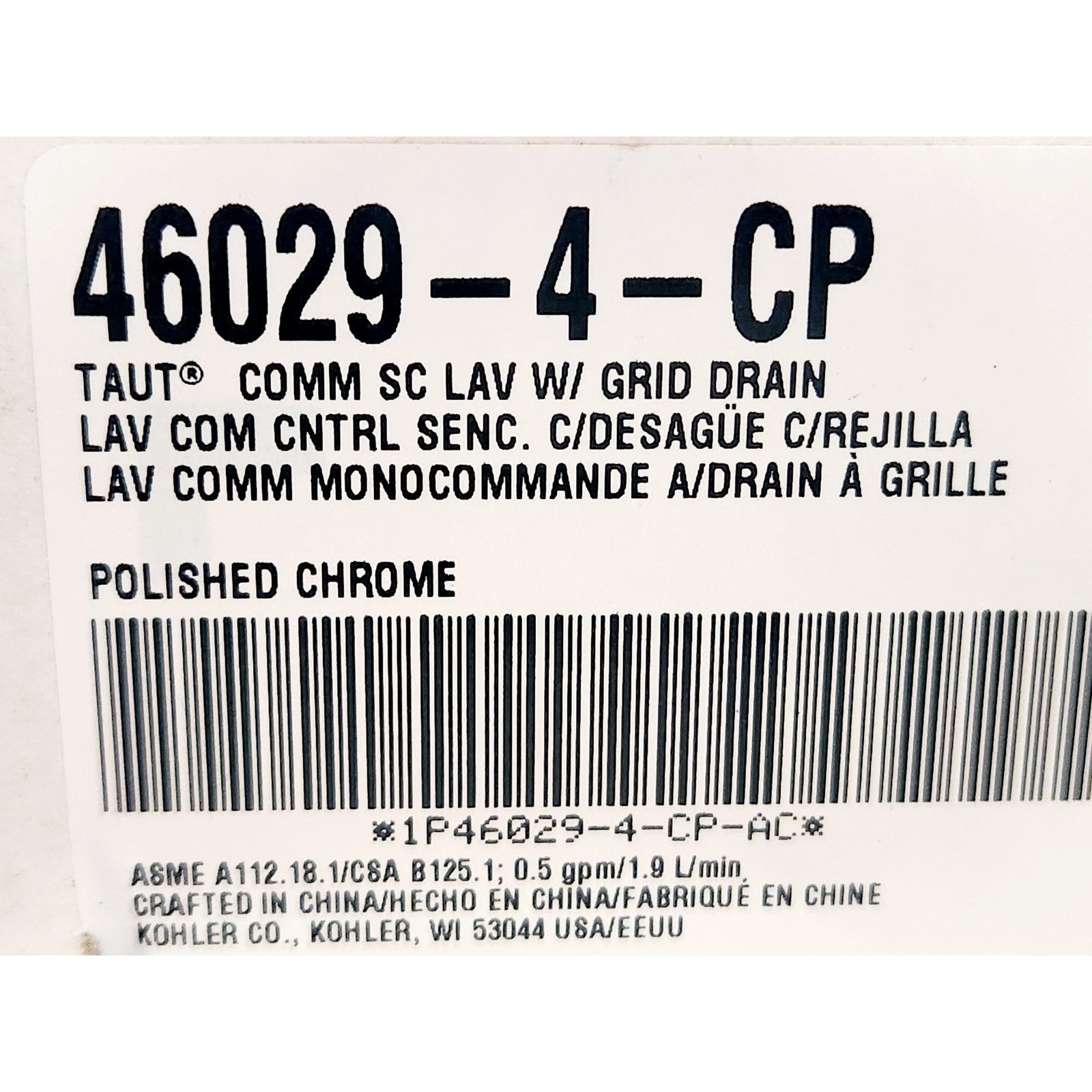 Kohler 46029-4-CP Taut 0.5 GPM Single Hole Bathroom Faucet - Polished Chrome