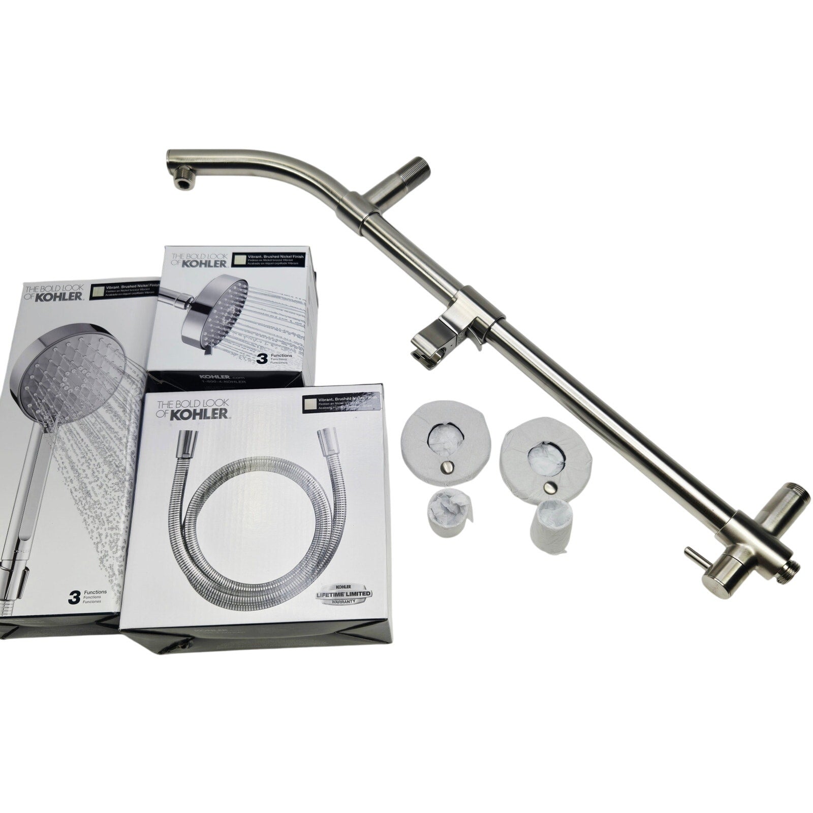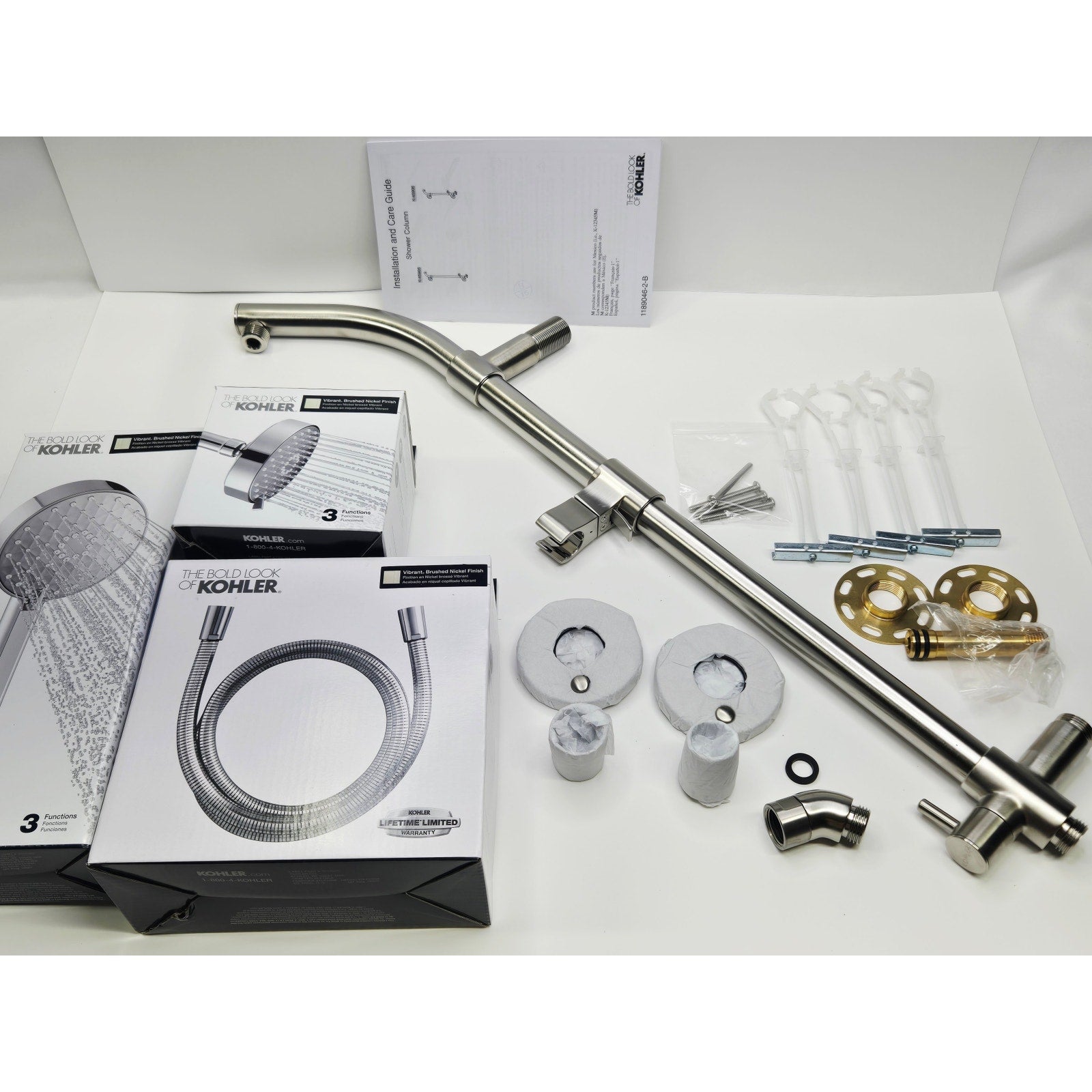 Create a luxurious 2-outlet showering experience with this easy-to-install kit, which includes an Awaken showerhead and hand shower with a HydroRail-S column and ribbon hose. Advanced spray performance delivers 3 distinct sprays - wide coverage, intense drenching or targeted. The artfully sculpted sprayface reveals simple, architectural forms that complement contemporary and minimalist baths.
