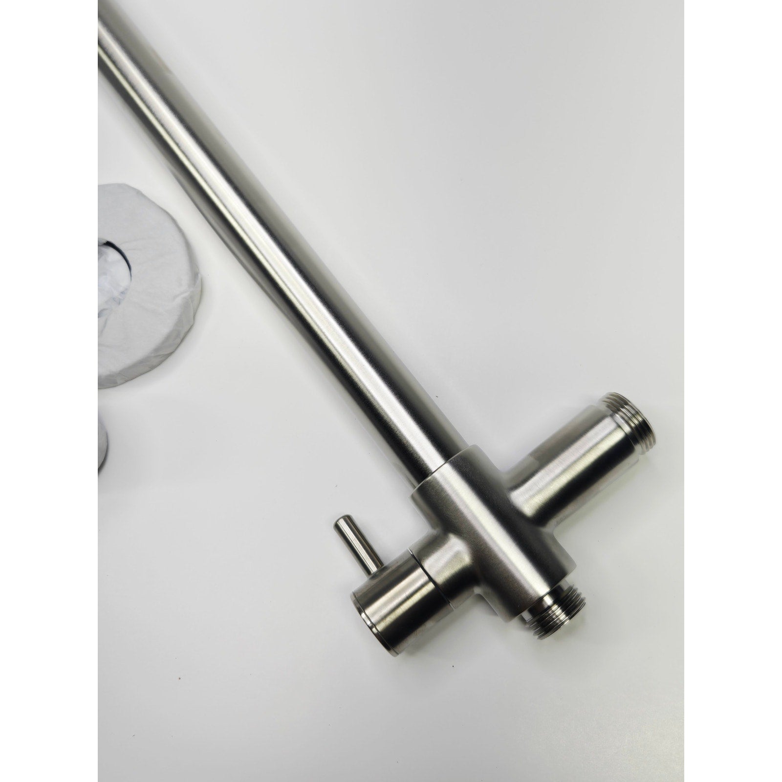 Diverter at base of column makes for easy toggling between hand shower and showerhead