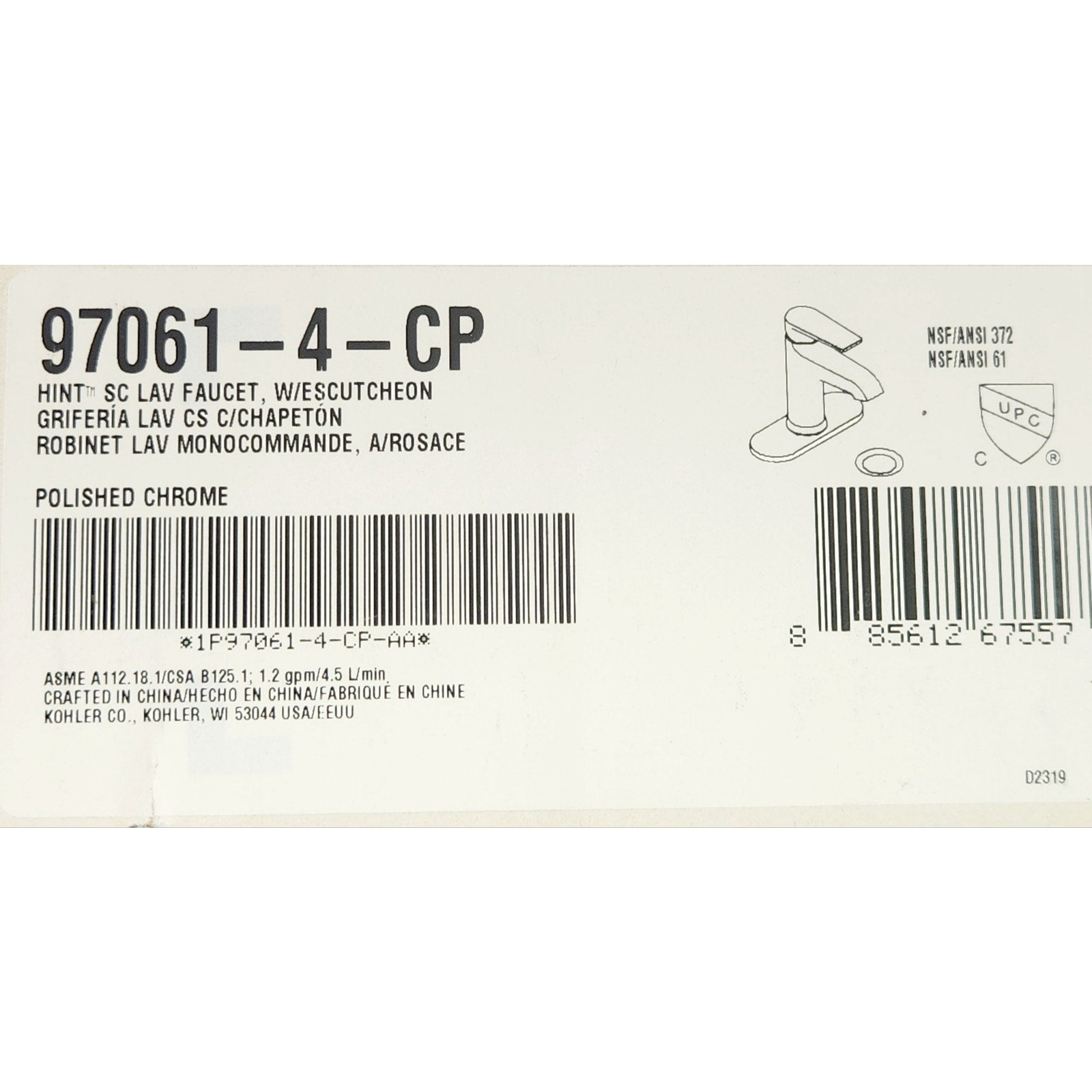 Kohler 97061-4-CP Hint Bathroom Faucet with Escutcheon, 1.2 GPM -Polished Chrome