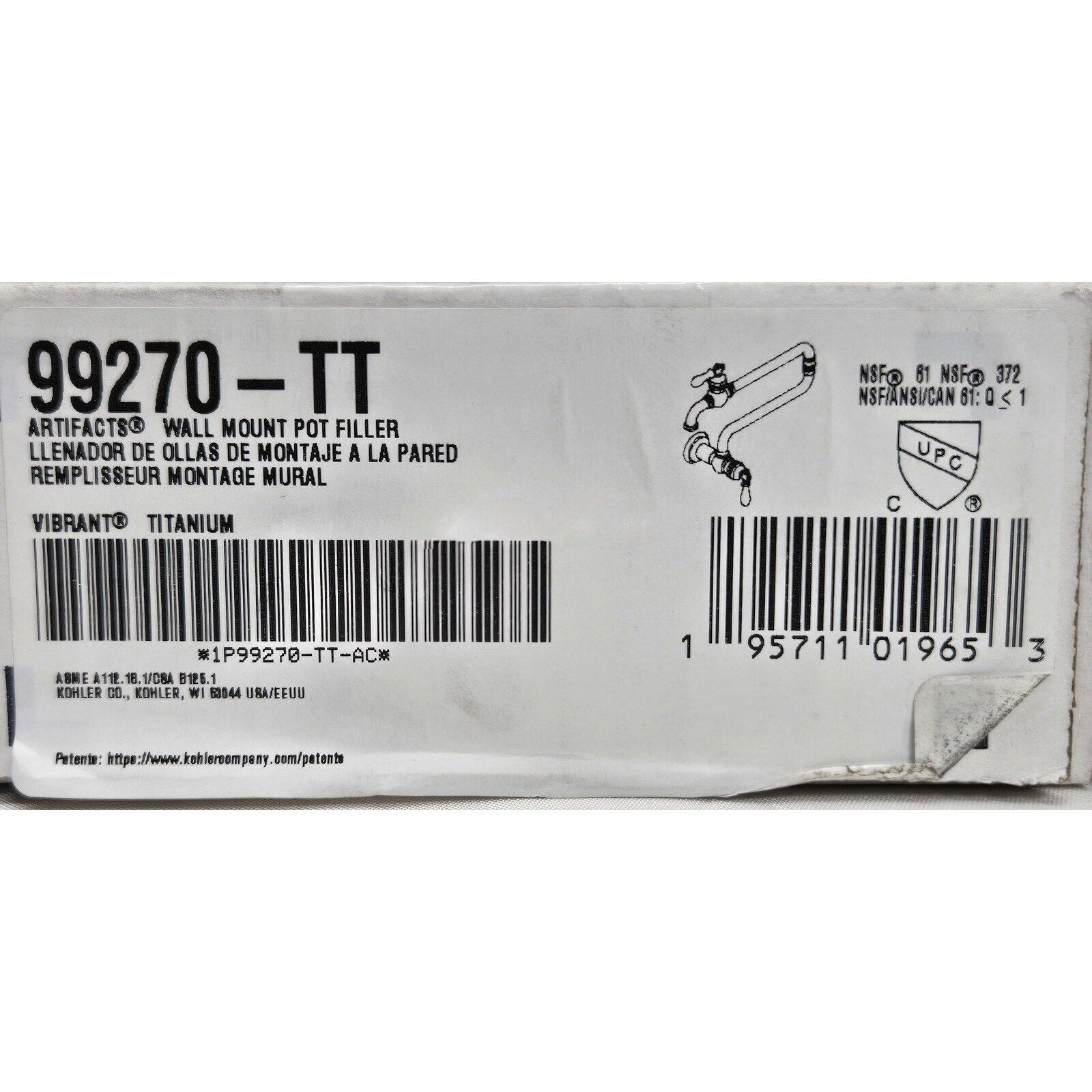 Kohler 99270-TT Artifacts Wall Mount Pot Filler - Vibrant Titanium