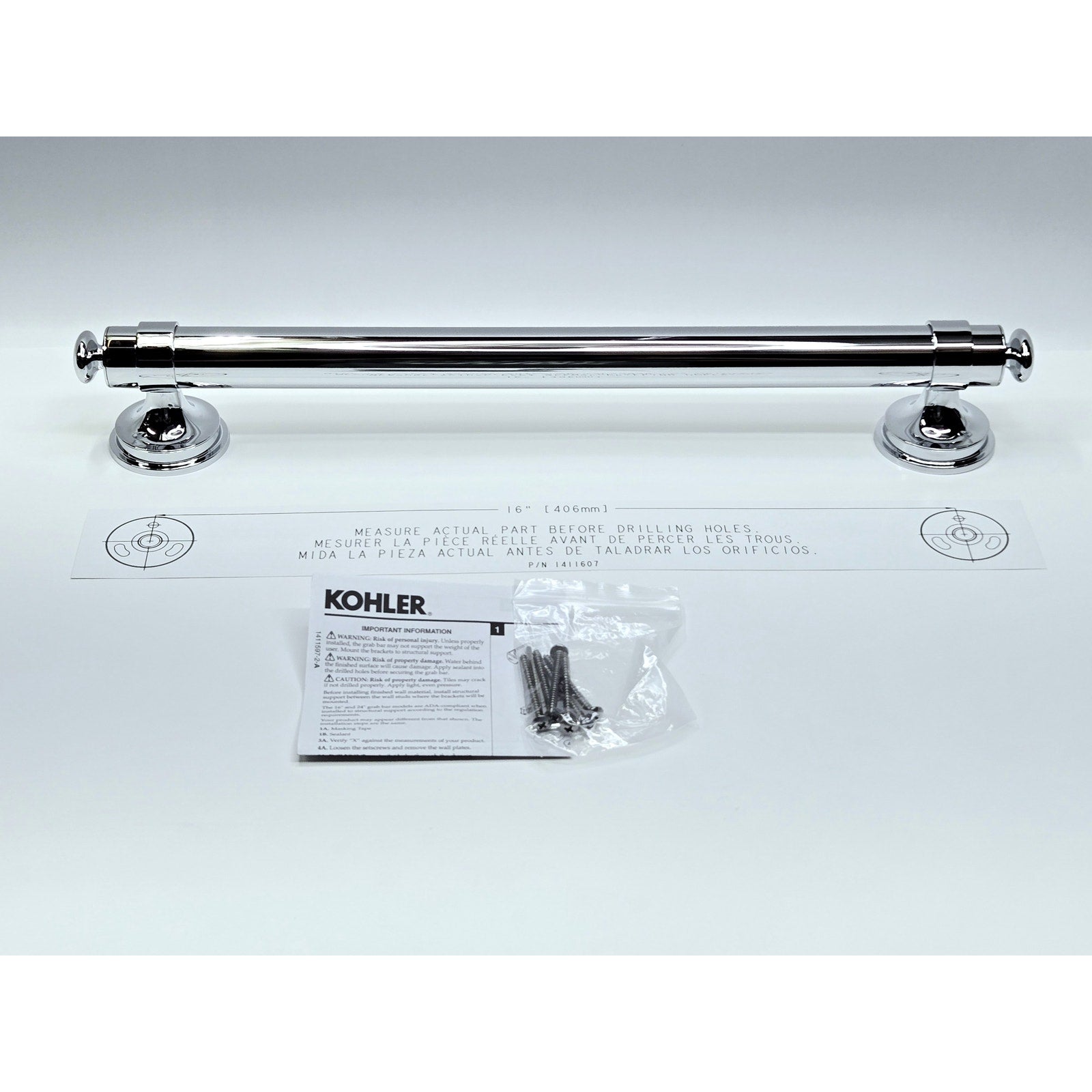 Kohler R27235-CP Carmichael 16" Grab Bar - Polished Chrome