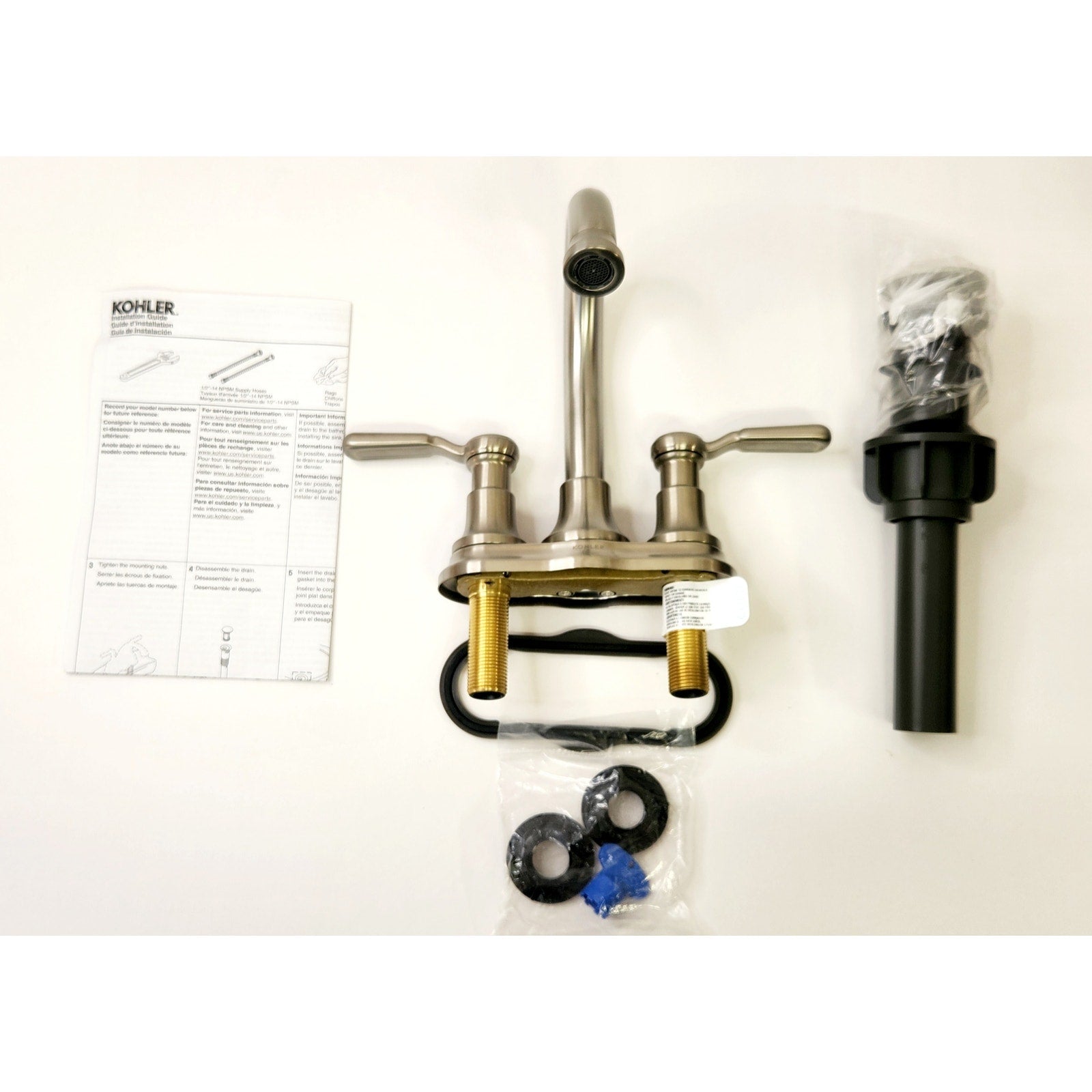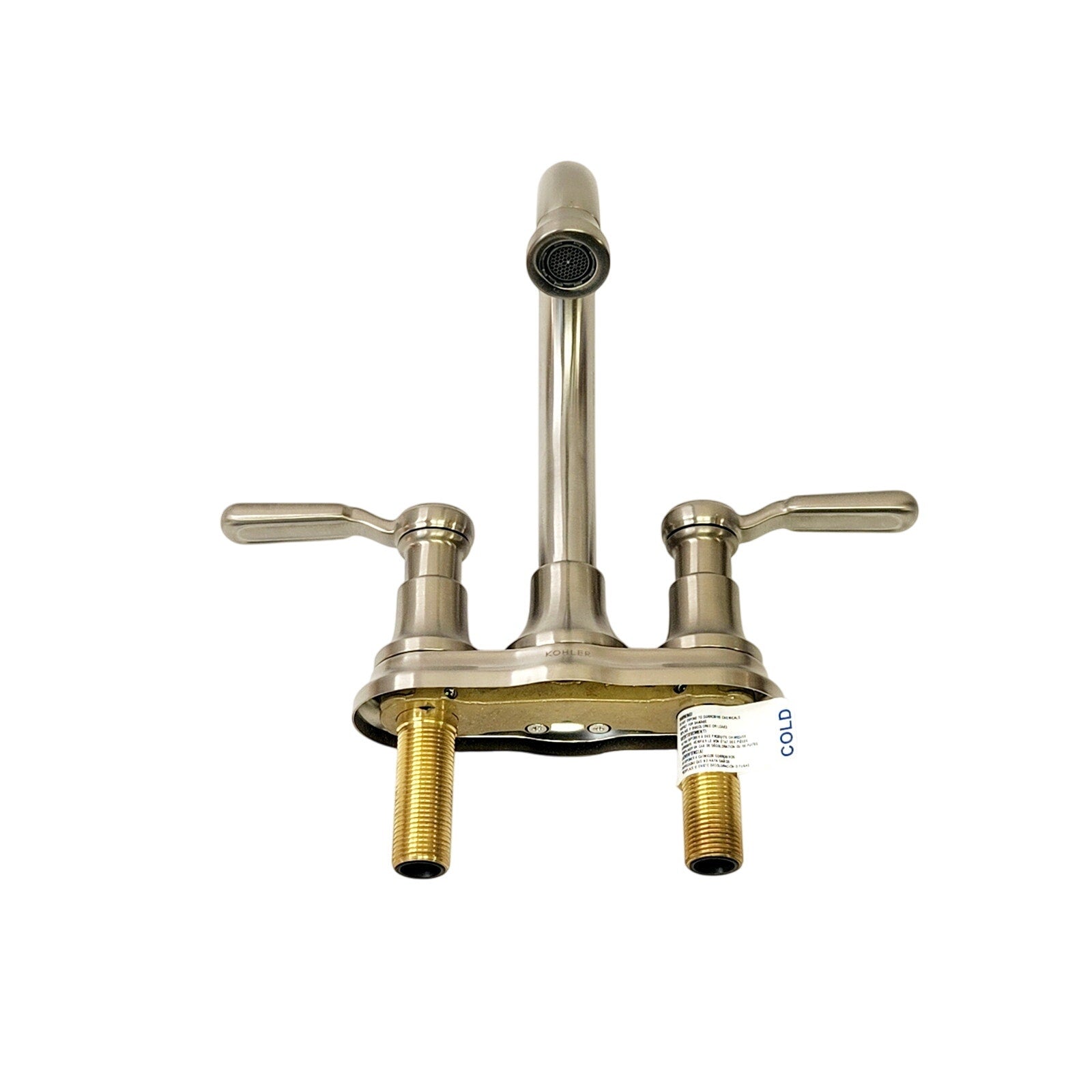 Achieve chic, industrial style in your bathroom with this 4 in centerset two-handle faucet. Featuring a handcrafted aesthetic, this faucet is designed with a nickel finish and unique attention to detail. This easy-to-clean, metal faucet boasts a durable, corrosion- and wear-resistant finish. Two lever handles offer smooth operation and separate control of hot and cold water. The ceramic valves offer a leak-free, drip-free water experience. The faucet's aerator ensures splash-free water flow. Enjoy easy assembly with no special tools required.