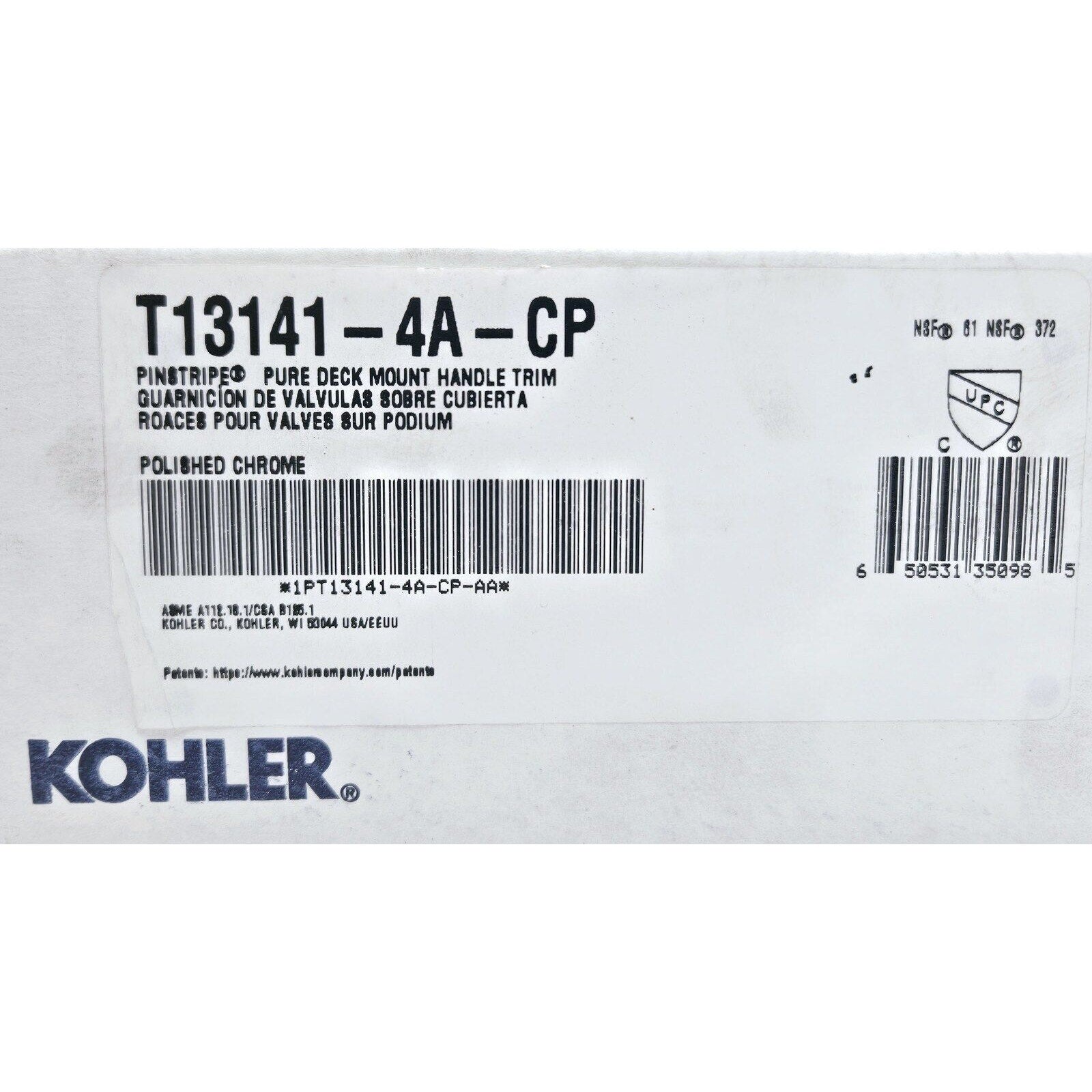 Kohler T13141-4A-CP Pinstripe Lever Bathtub Faucet Handle - Polished Chrome