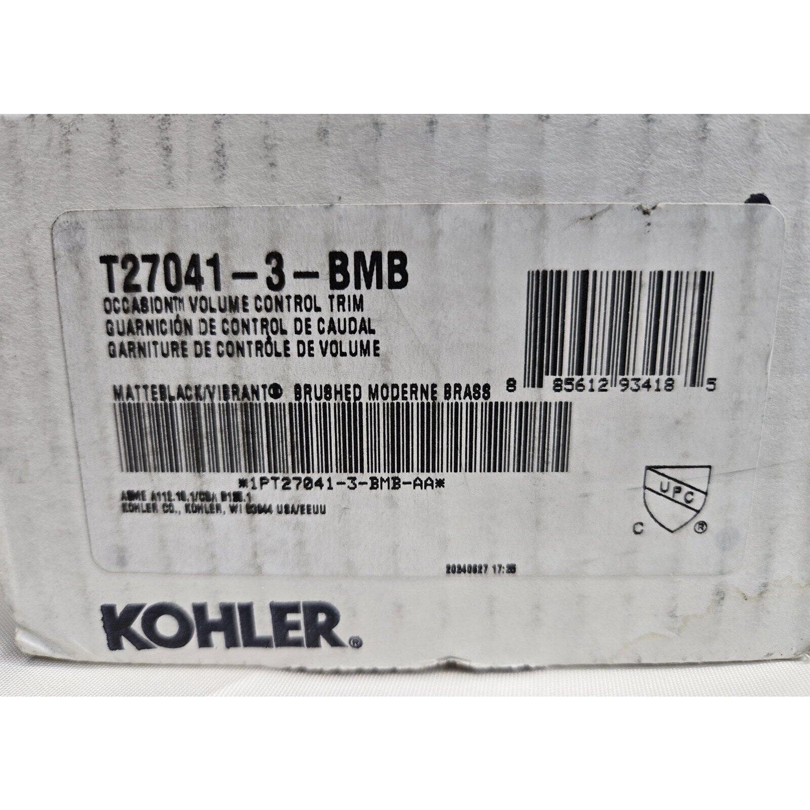 Kohler T27041-3-BMB Occasion Cross Handle Valve Trim, No Valve - Brass/Black