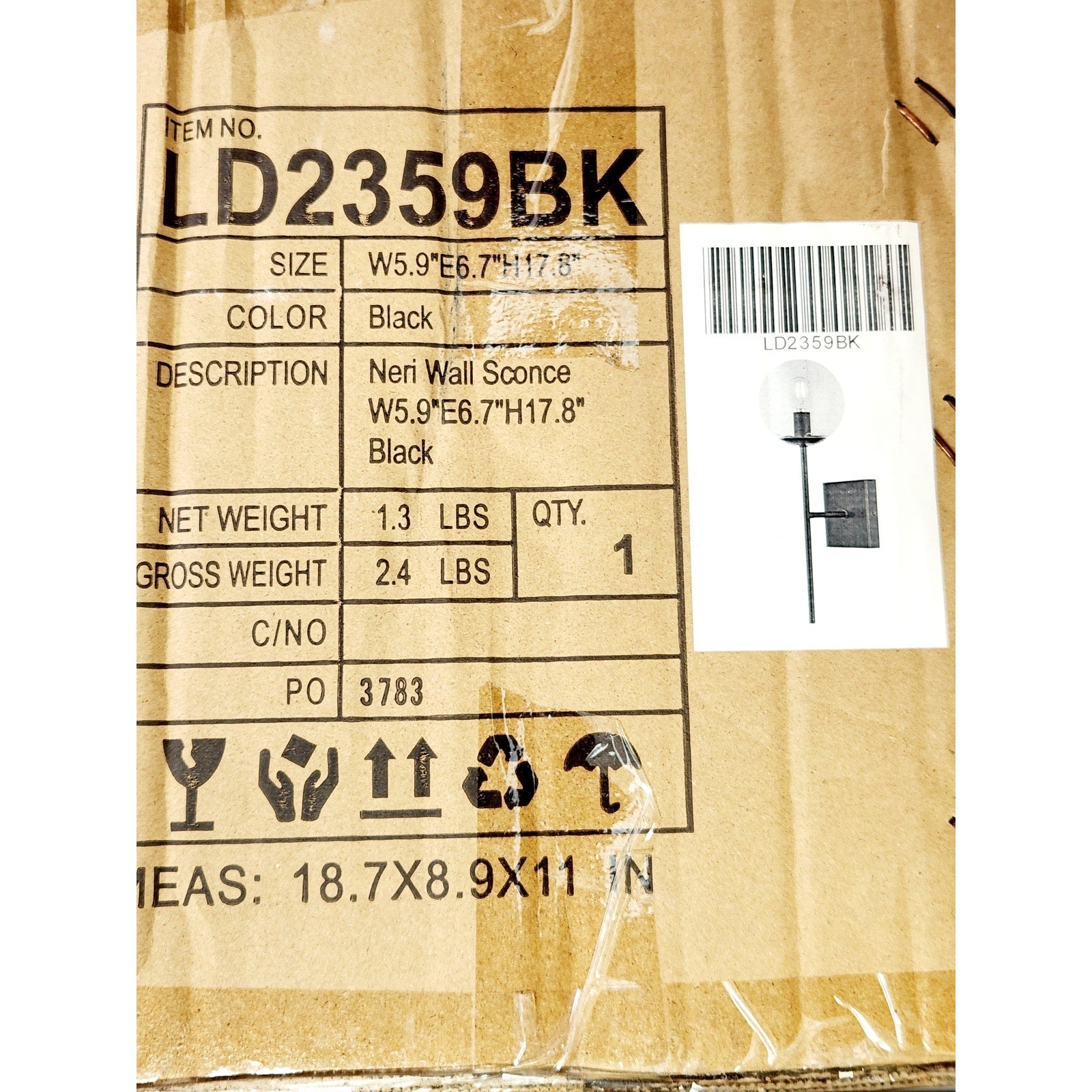 Elegant Lighting LD2359BK Neri 18" Tall Bathroom Sconce - Black