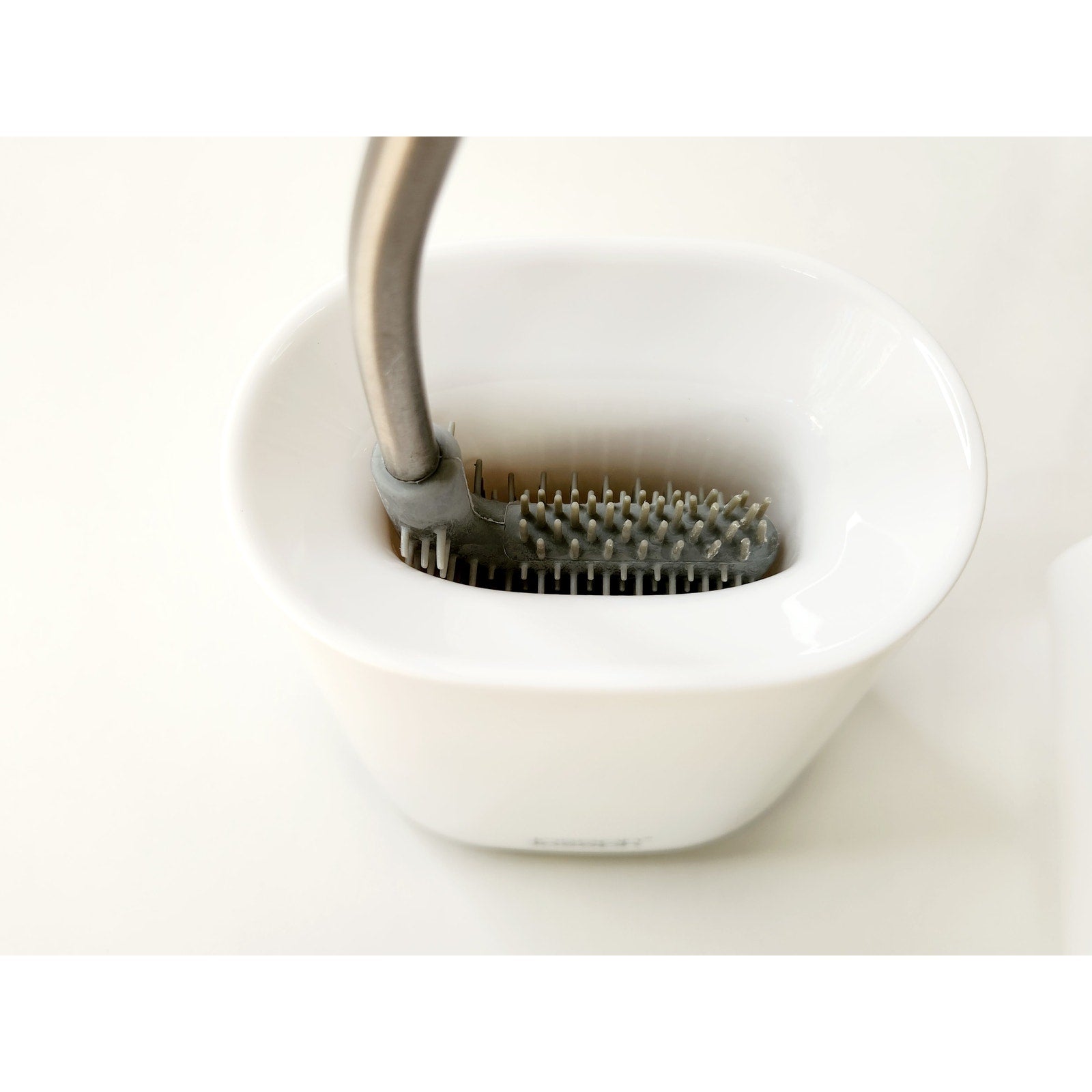 Flexible brush head reaches all areas, including under the rim