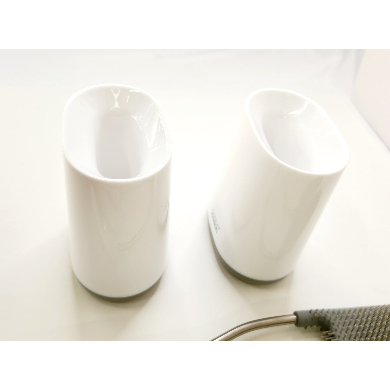 Includes 2 toilet brushes and 2 matching storage canisters