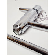 Double lever handles control the flow and temperature of water
