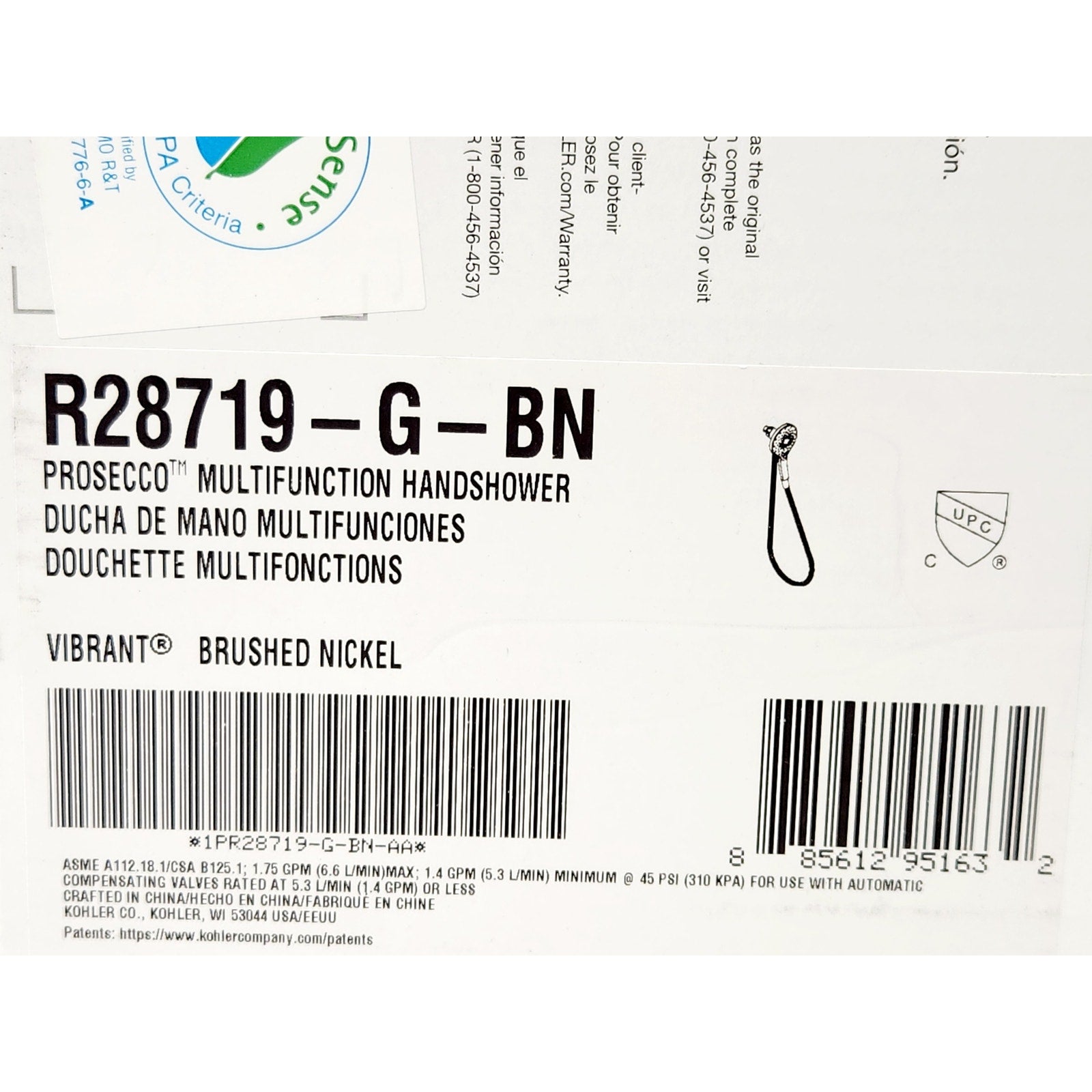 Kohler R28719-G-BN Prosecco Three-Function Handshower, 1.75 gpm - Brushed Nickel