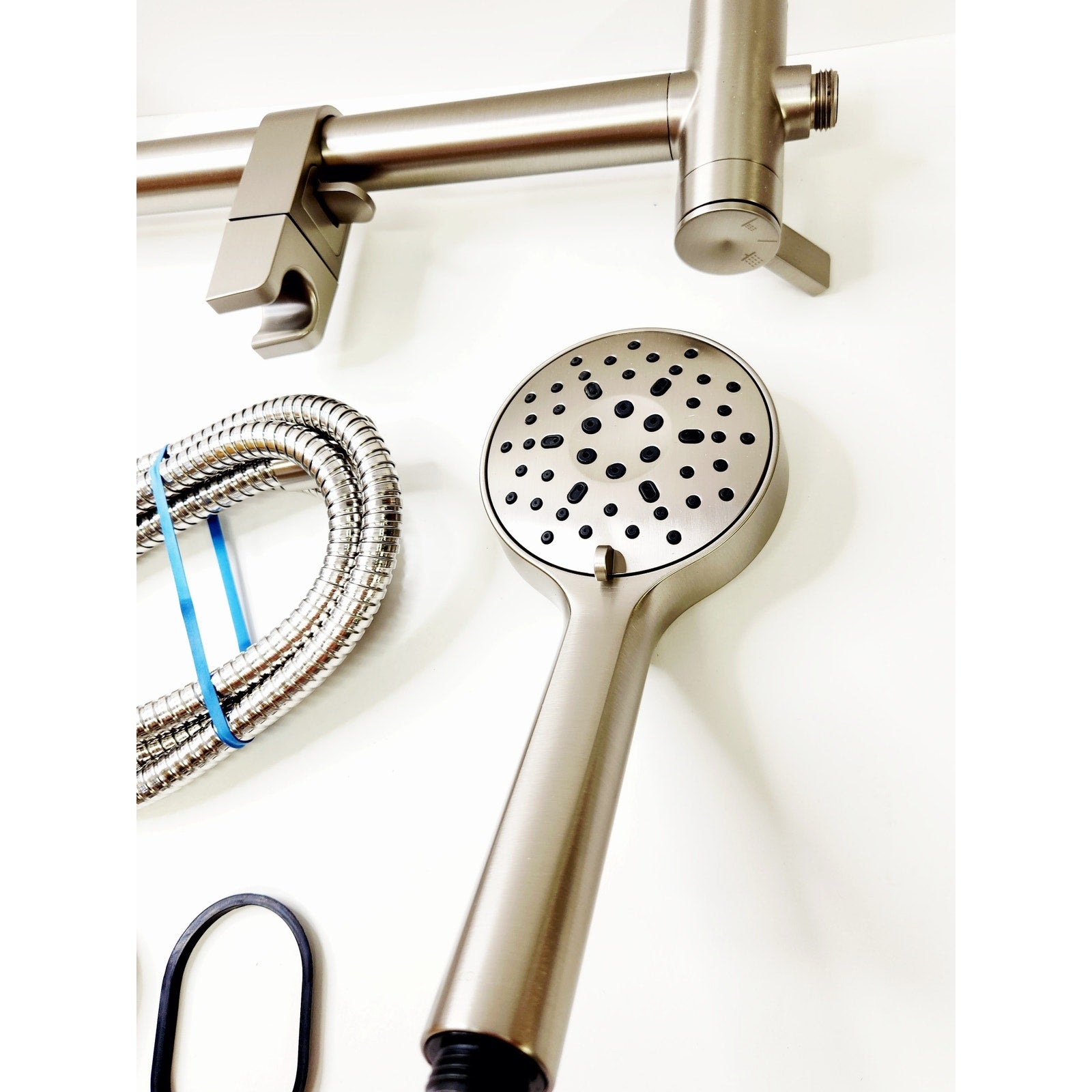 Diverter at base of column makes for easy toggling between handshower and showerhead