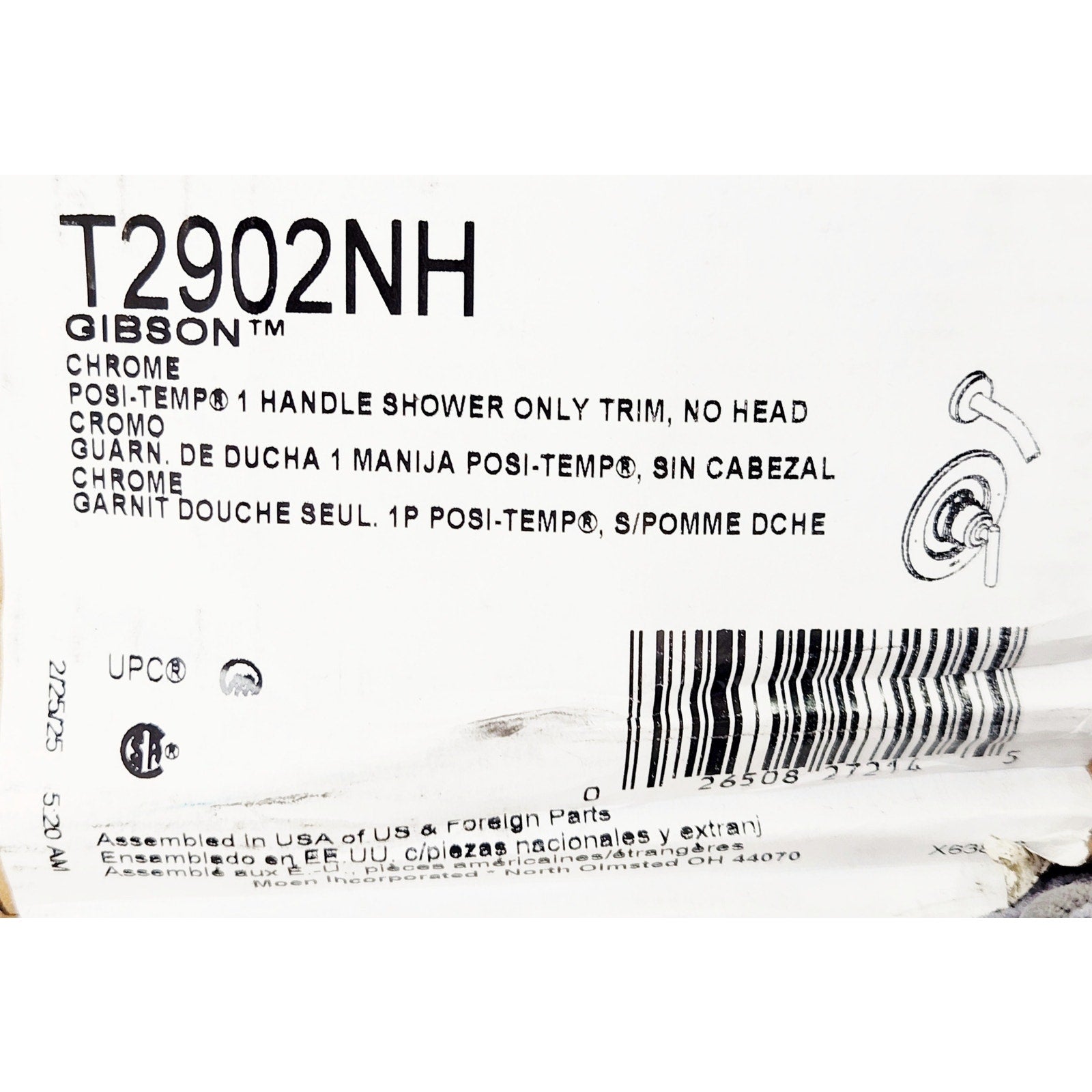 Moen T2902NH Gibson Shower Trim Package with M-PACT and Posi-Temp - Chrome