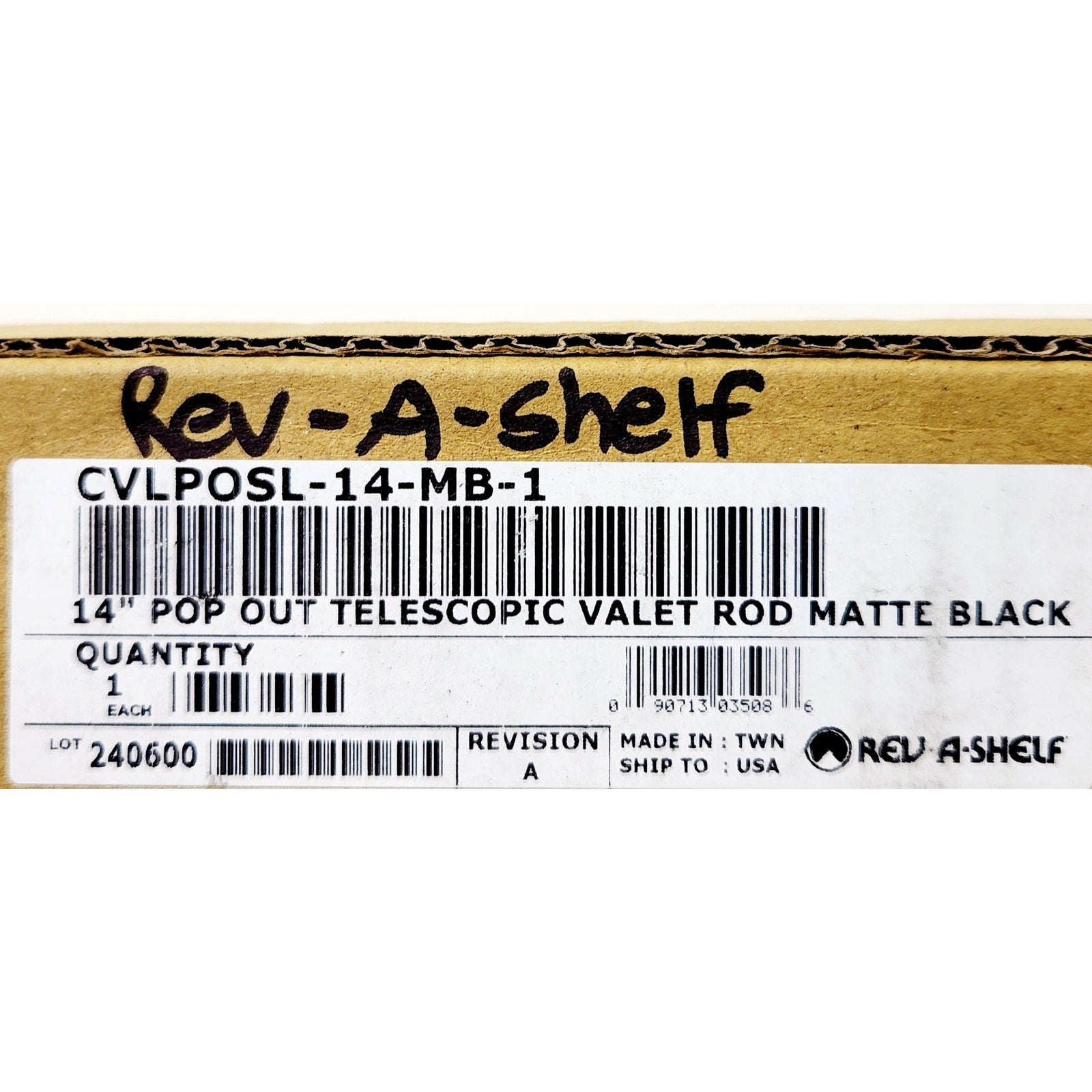 Rev-A-Shelf CVLPOSL-14-MB-1 Pop Out Valet Rod For Closet Systems - Matte Black