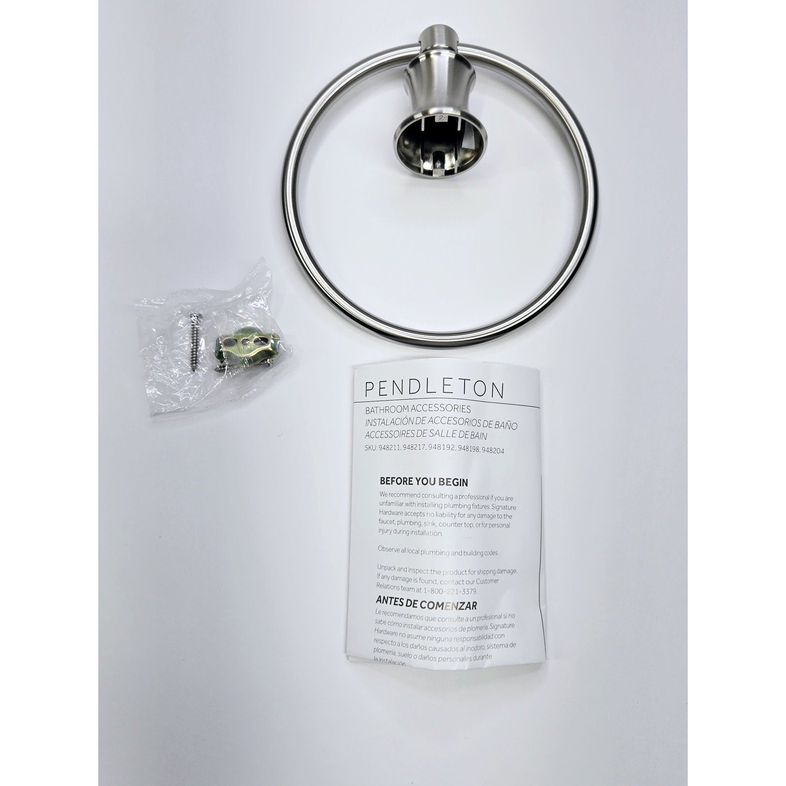Signature Hardware 446873 Pendleton 6-1/2" Towel Ring - Brushed Nickel