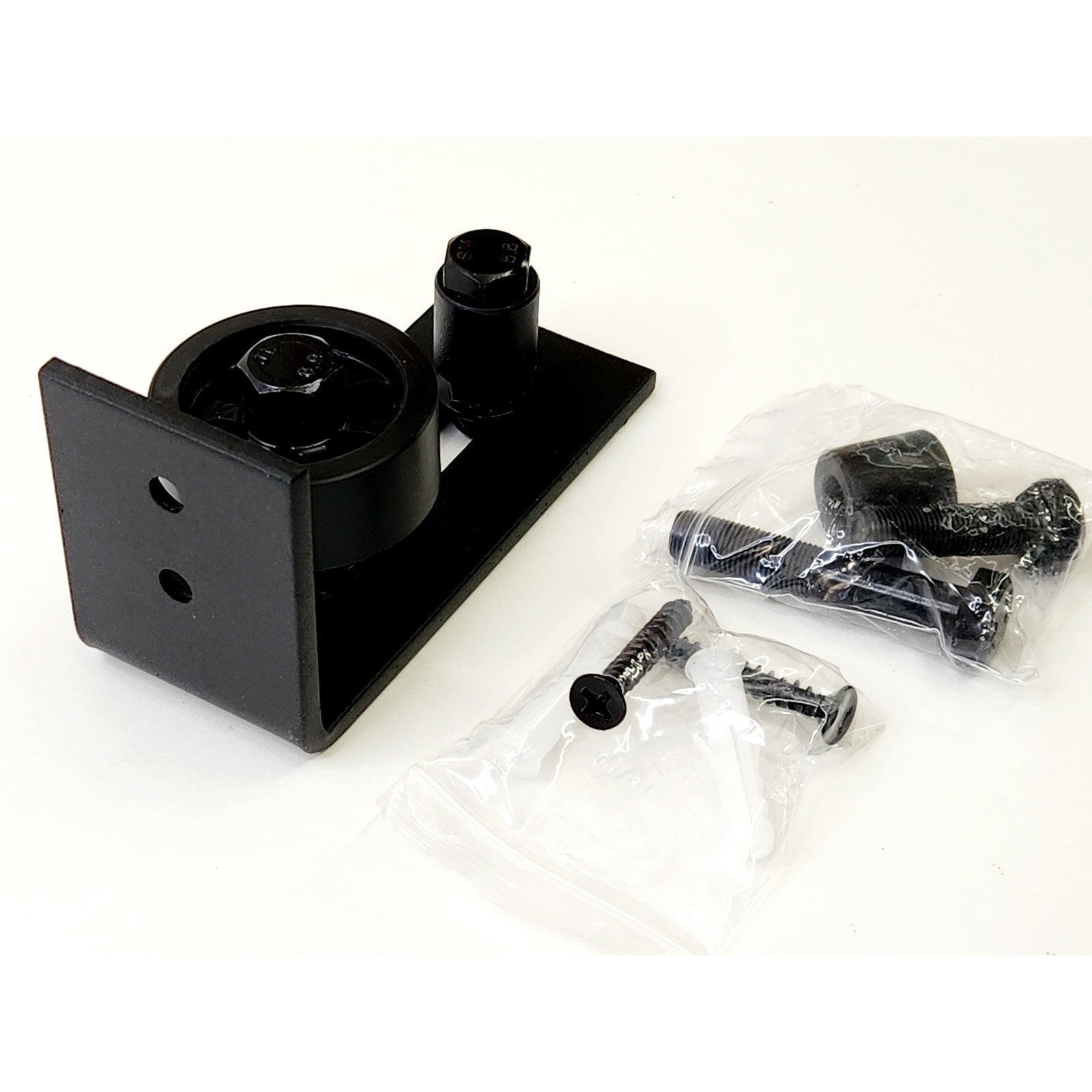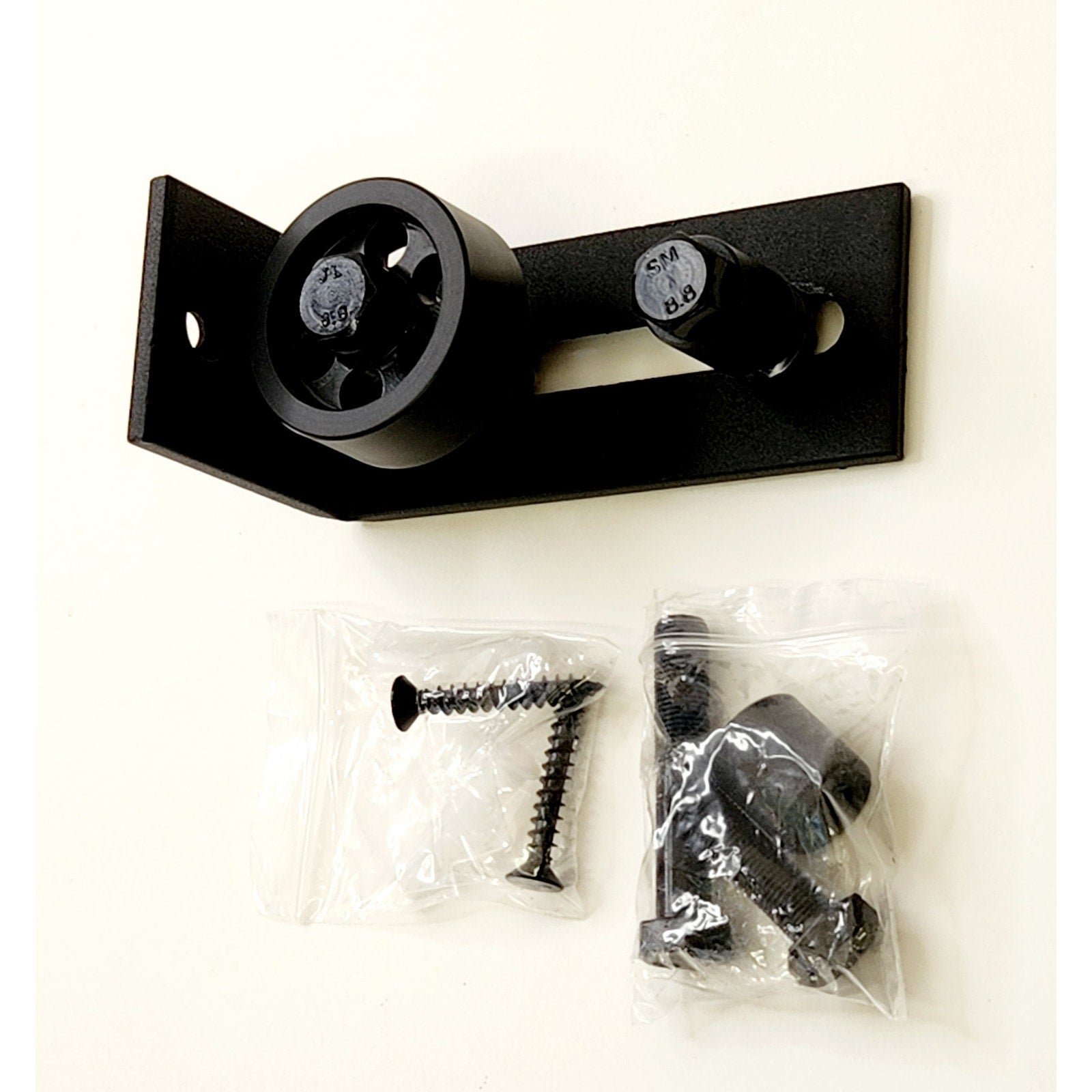 The Adjustable Wall-Mount Barn Door Guide attaches where your wall meets the floor, keeping your door stabilized. It features a pair of adjustable rollers that keep the door operating smoothly and quietly and prevent surface scratches. Easy to install using a pair of provided screws.