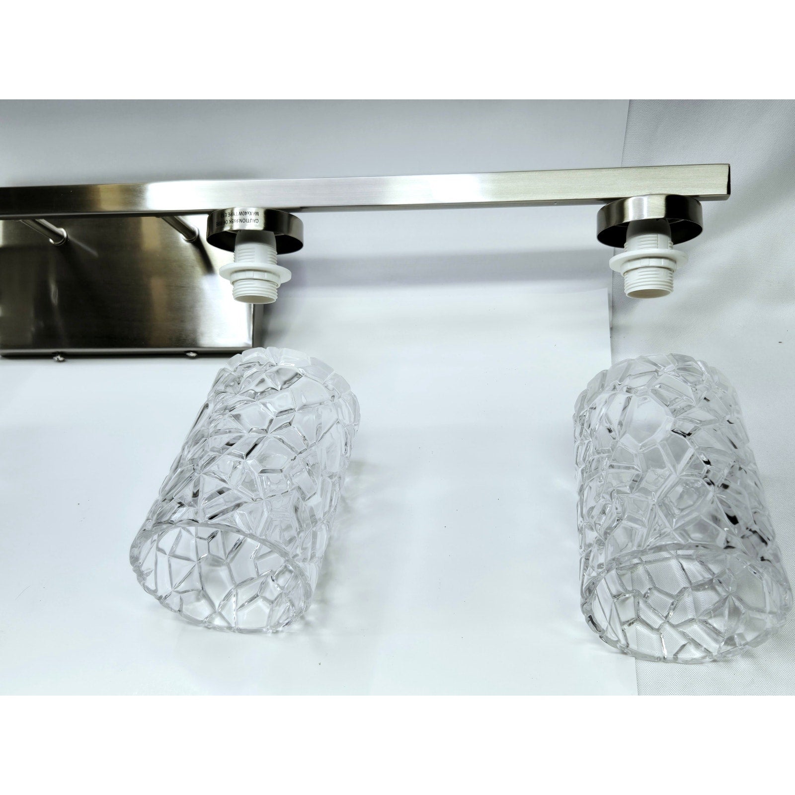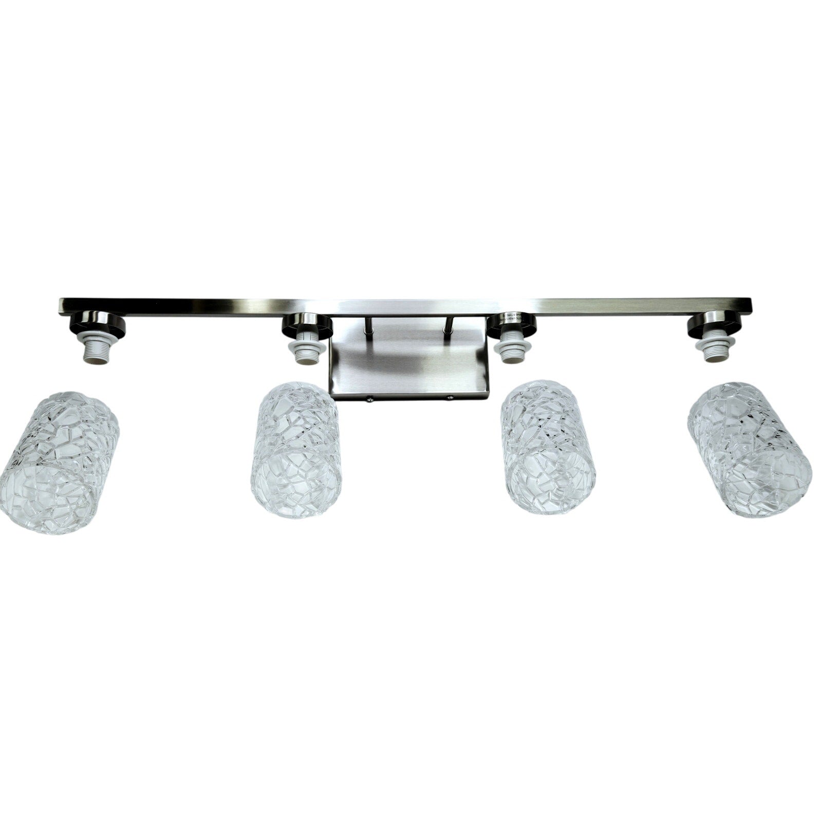 Illuminate your space with elegance and contemporary flair using this striking wall sconce. This versatile lighting fixture comes in four premium finishes—Chrome, Black, Brass, and Satin Nickel—so you can select the perfect option to enhance your room's aesthetic. The distinctive glass shade boasts a stunning, intricately textured design that creates a sophisticated interplay of light and shadow, making this sconce an eye-catching feature whether the light is on or off. Designed with versatility in mind, this sconce can be mounted facing up or down, allowing you to customize the ambiance and highlight specific areas of your space. With four E12 sockets that accommodates a wide variety of bulbs (bulbs not included), this fixture provides the freedom to set the mood, whether you prefer soft, subtle lighting or a bright and vibrant glow. Ideal for any room in the home—whether it’s accentuating your hallway, or adding warmth to your bedroom—this wall sconce brings sophisticated style and functional lighting to any setting.