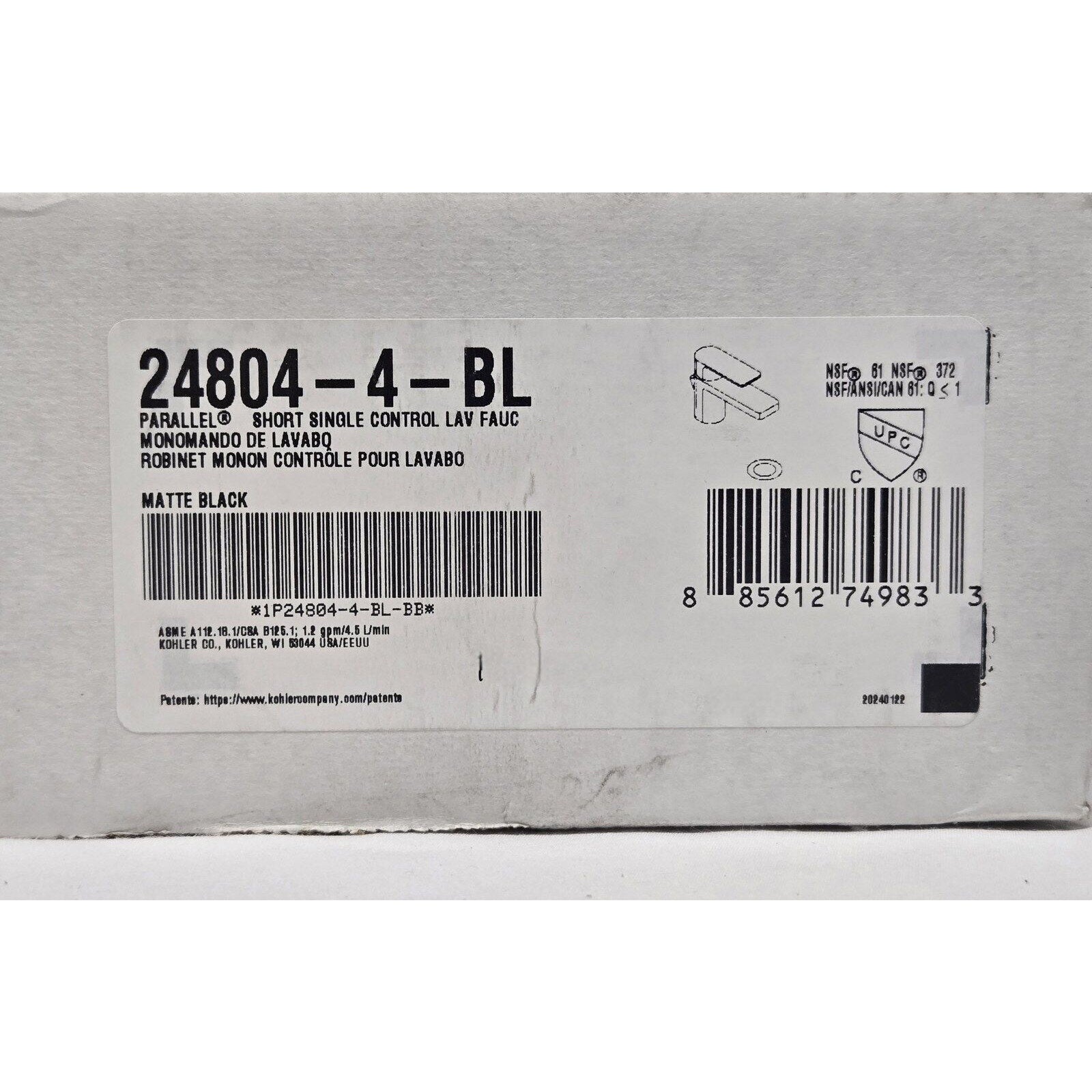 Kohler 24804-4-BL Parallel Low 1-Handle Bath Faucet, 1.2 GPM - Matte Black