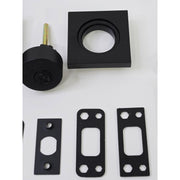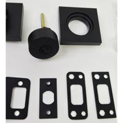 INTERCHANGEABLE PLATES: Deadbolt latch has 3 interchangeable faceplates; round corner, square corner, and drive-in collar