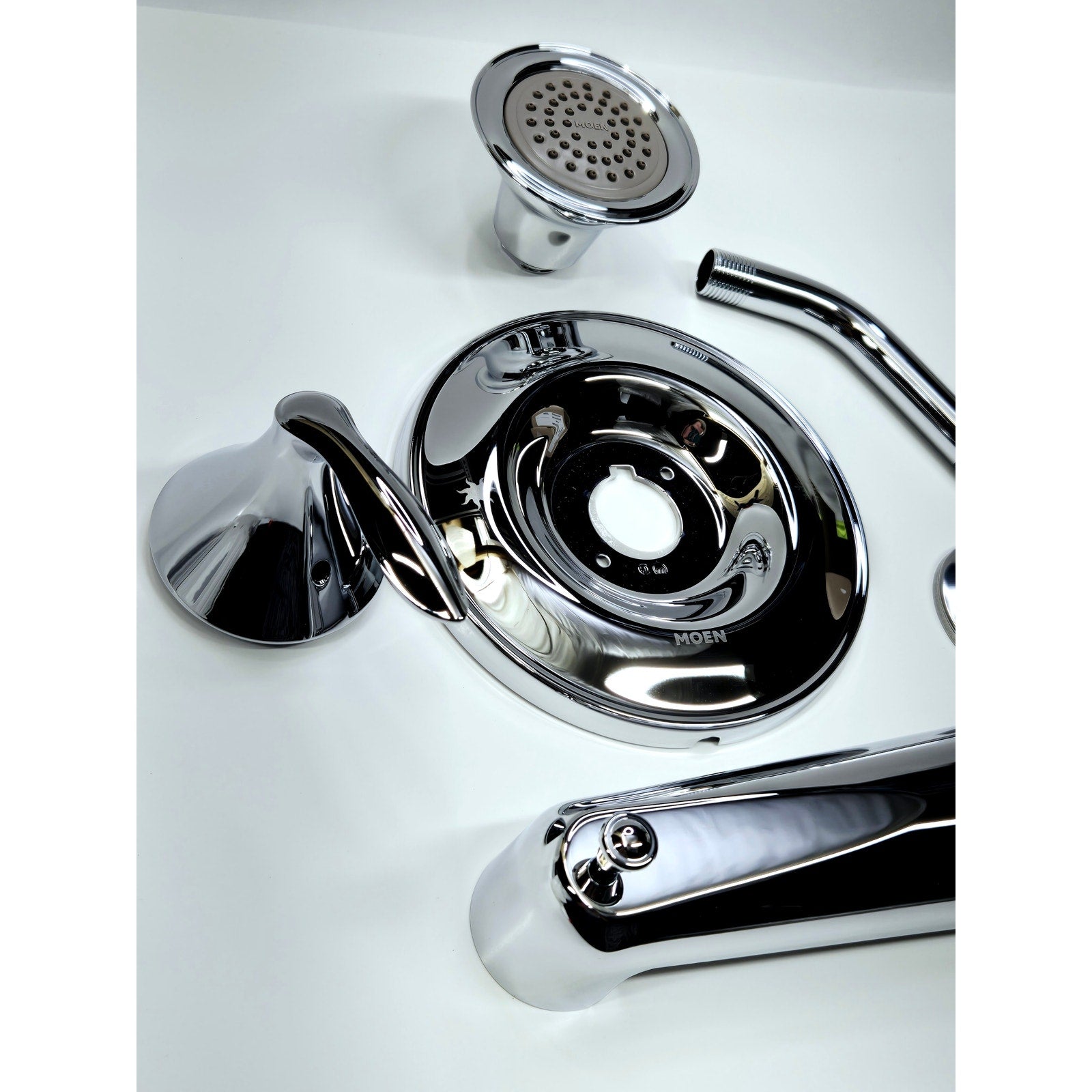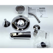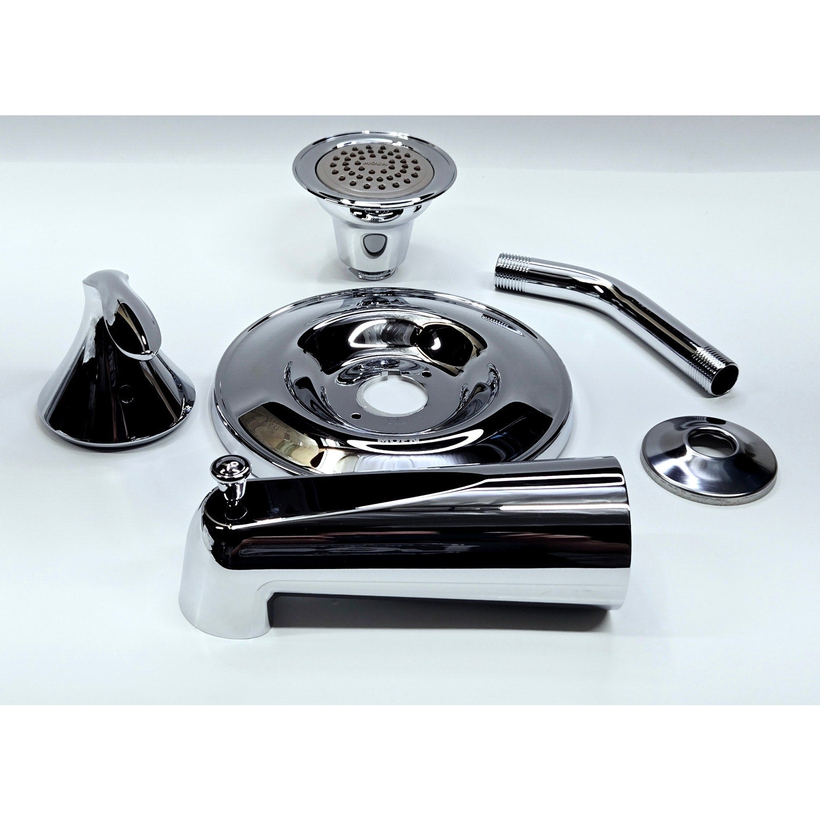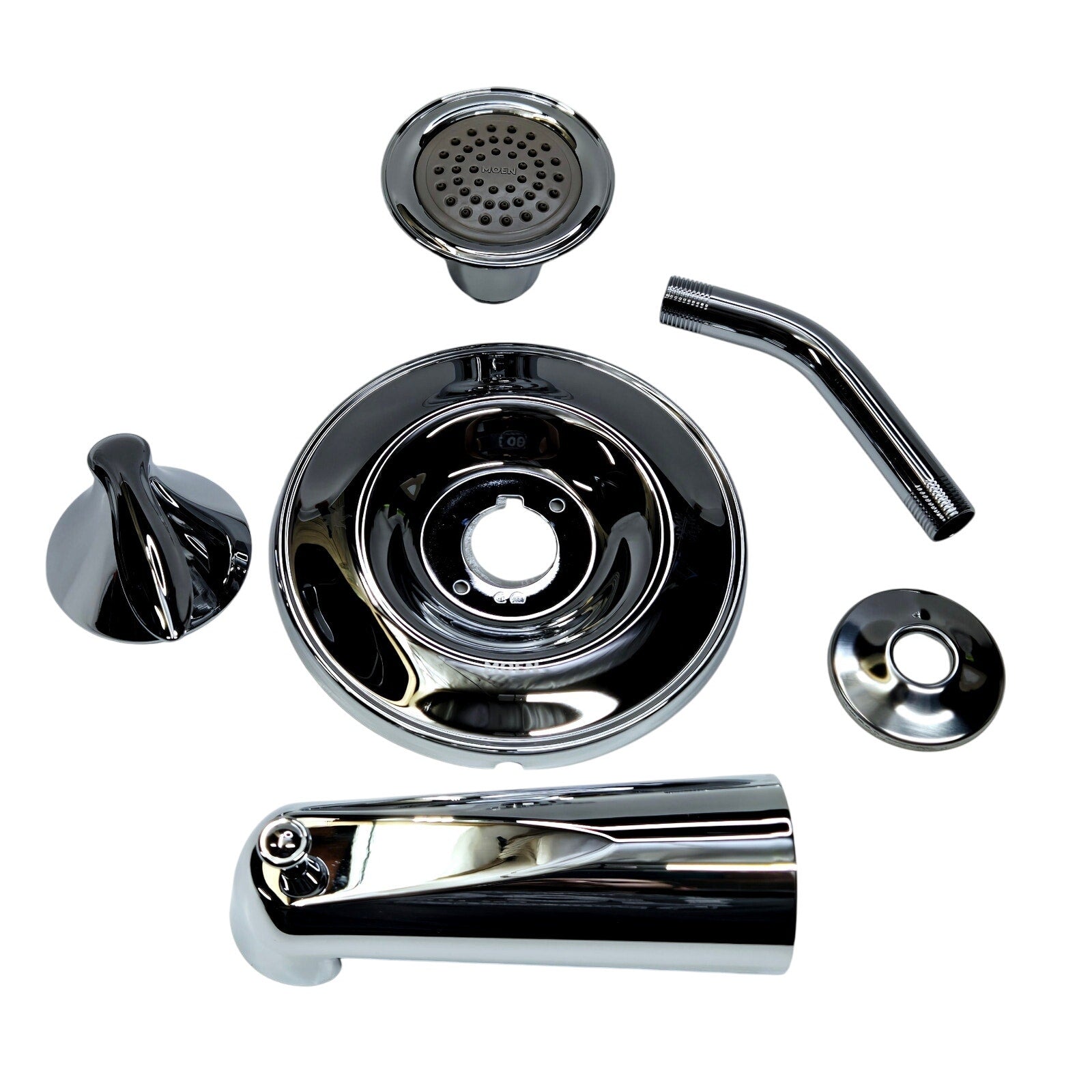 Tub and Shower Package Includes: Valve trim, shower head, shower arm, and tub spout