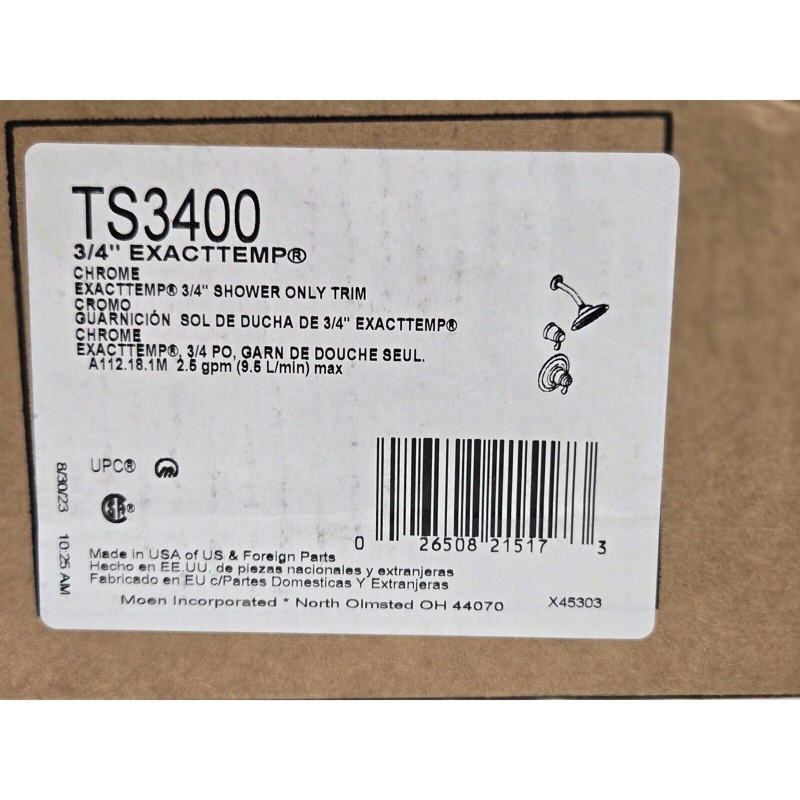 Moen TS3400 ExactTemp Thermostatic Shower Trim, No Valve - Chrome